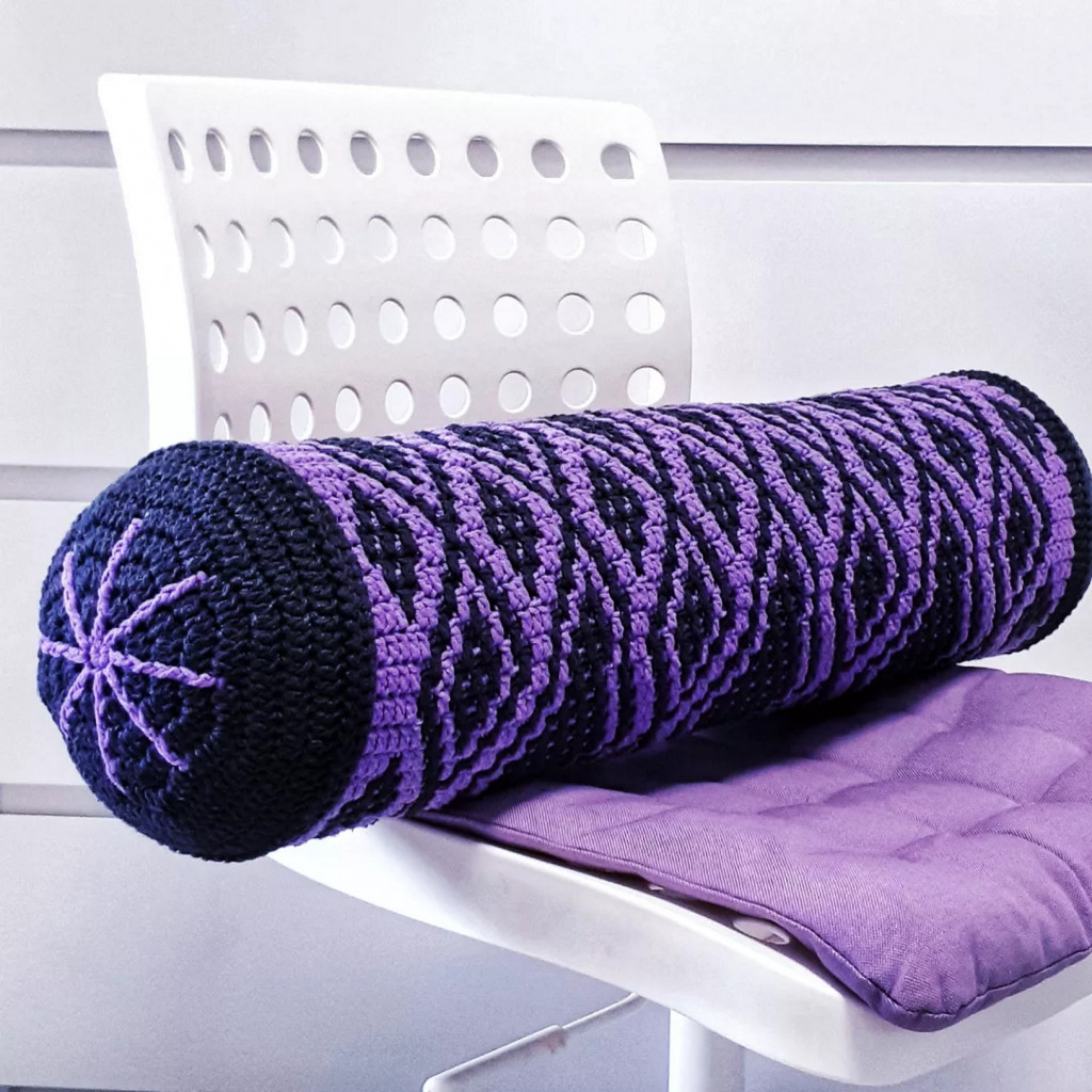 Подушка крючком в технике мозаика с моим авторским узором "Венеция"
