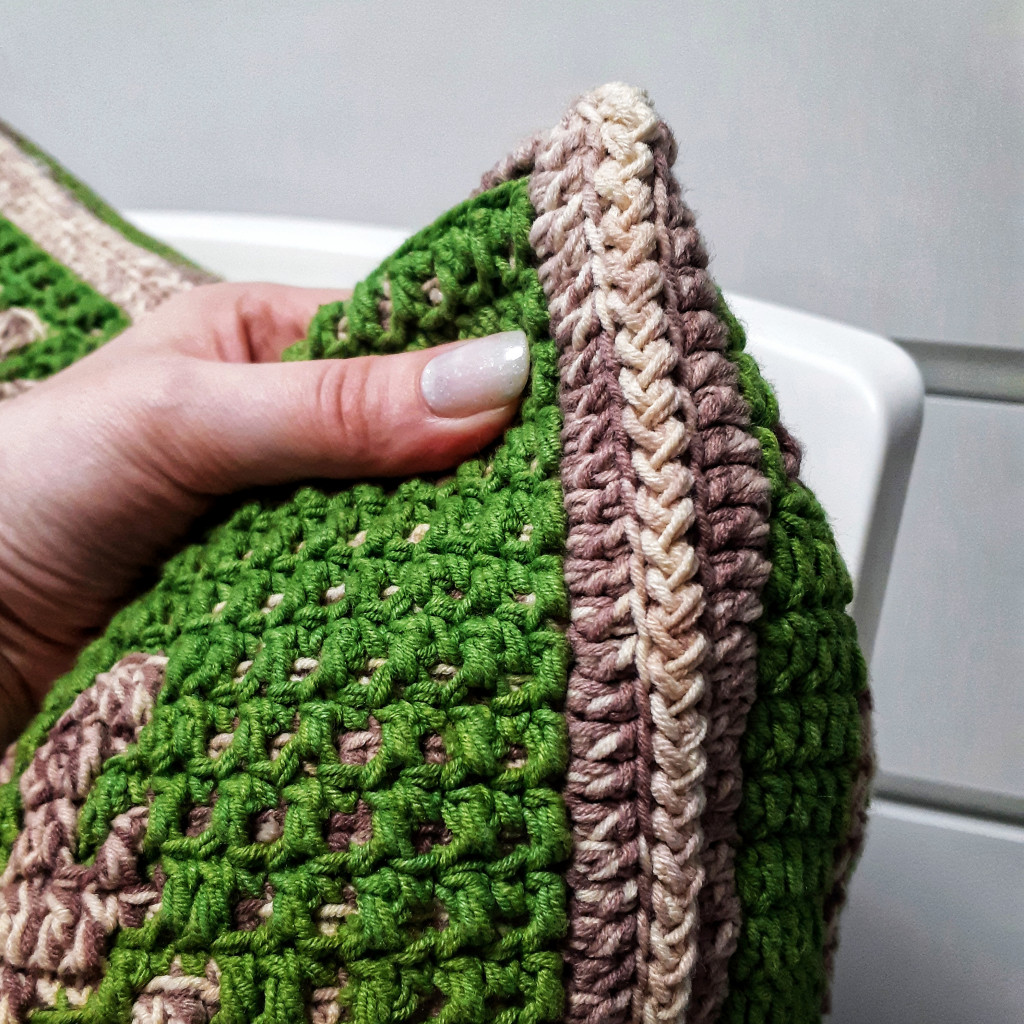 Двусторонний плед связан крючком в технике с2с, размер получился 105х153
