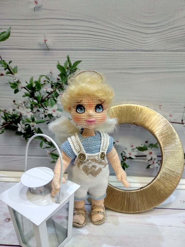 Мандариновый ангел связан по МК Ольги Гончаровой "Ангелок на качелях"