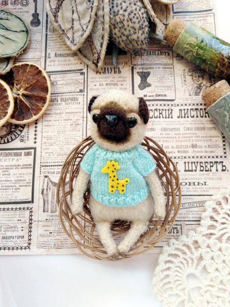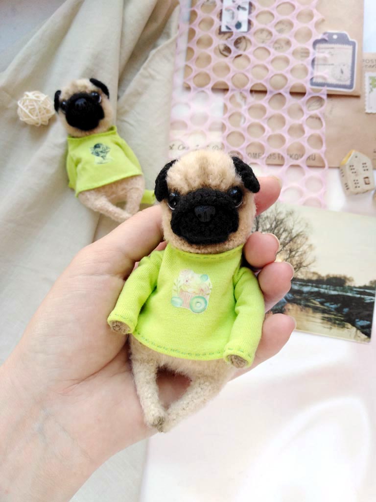 Крошка мопс, связан крючком #1 из "Нежного" мохера есть МК