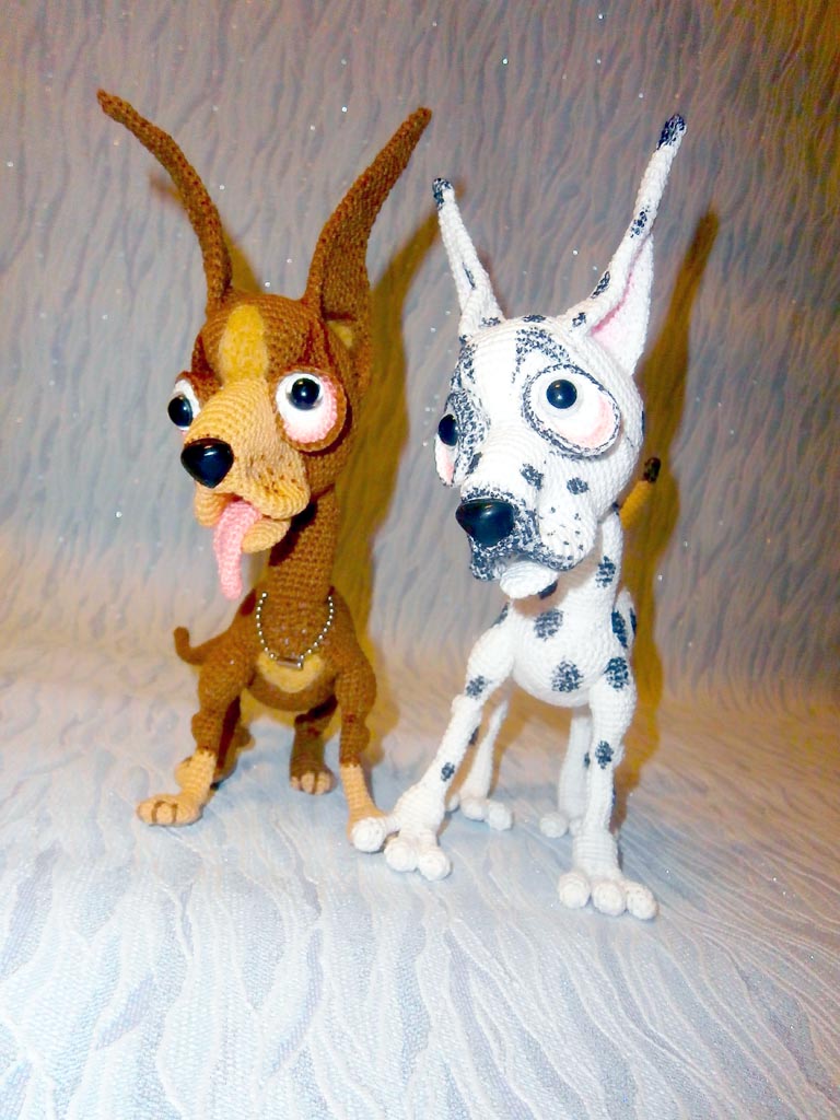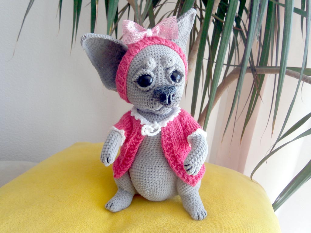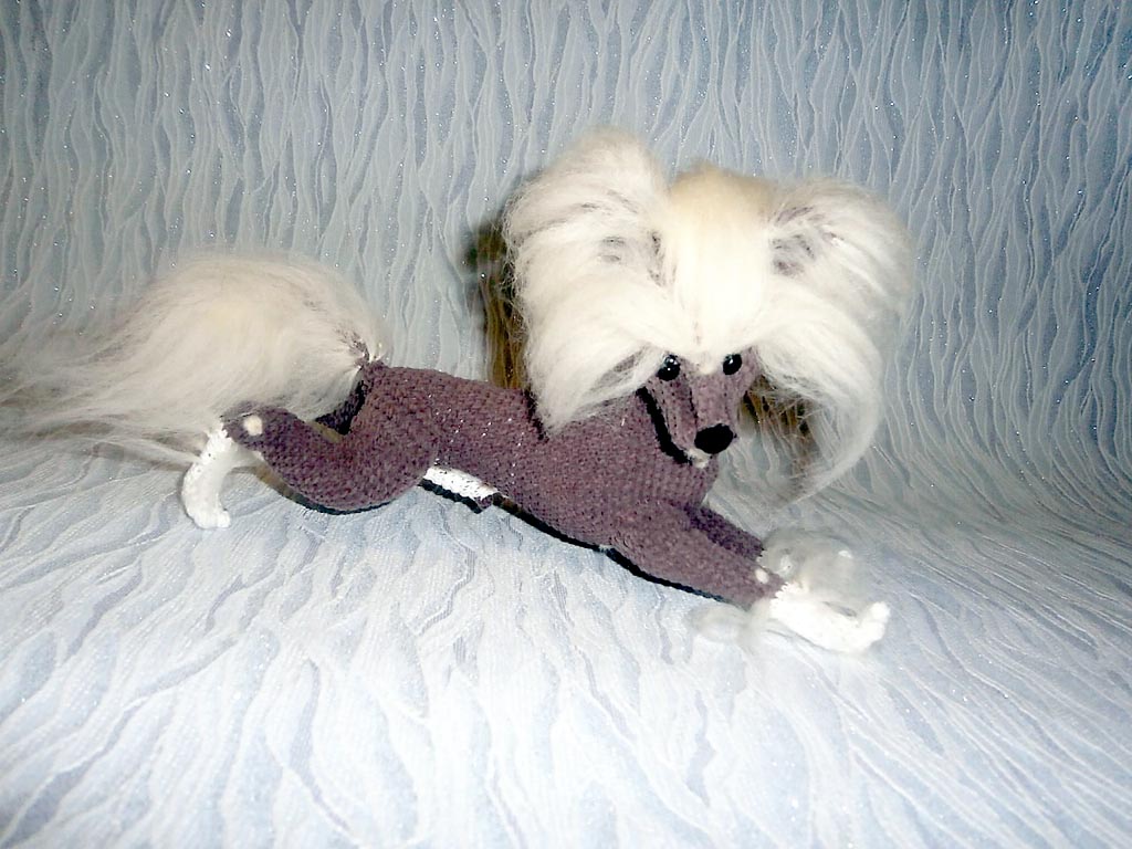 Эту собачку зовут Персей. А связана она по МК Наташи Загребиной - замечательного автора, умеющего воплотить все нюансы собачьей породы в вязаном полотне.