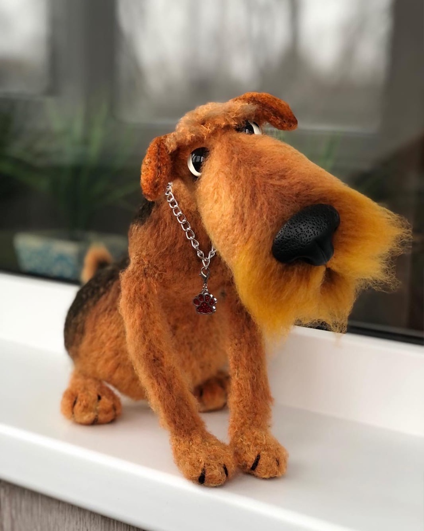 Малыш эрдельтерьер, связан крючком #1 из итальянского мохера, МК нет