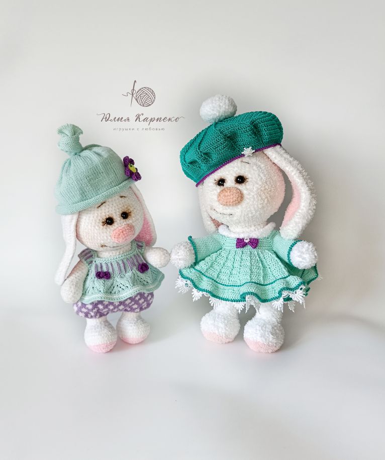 Милые Зайки по МК Елены Аккоджа Зайка Мила и Комплект одежды Снежинка