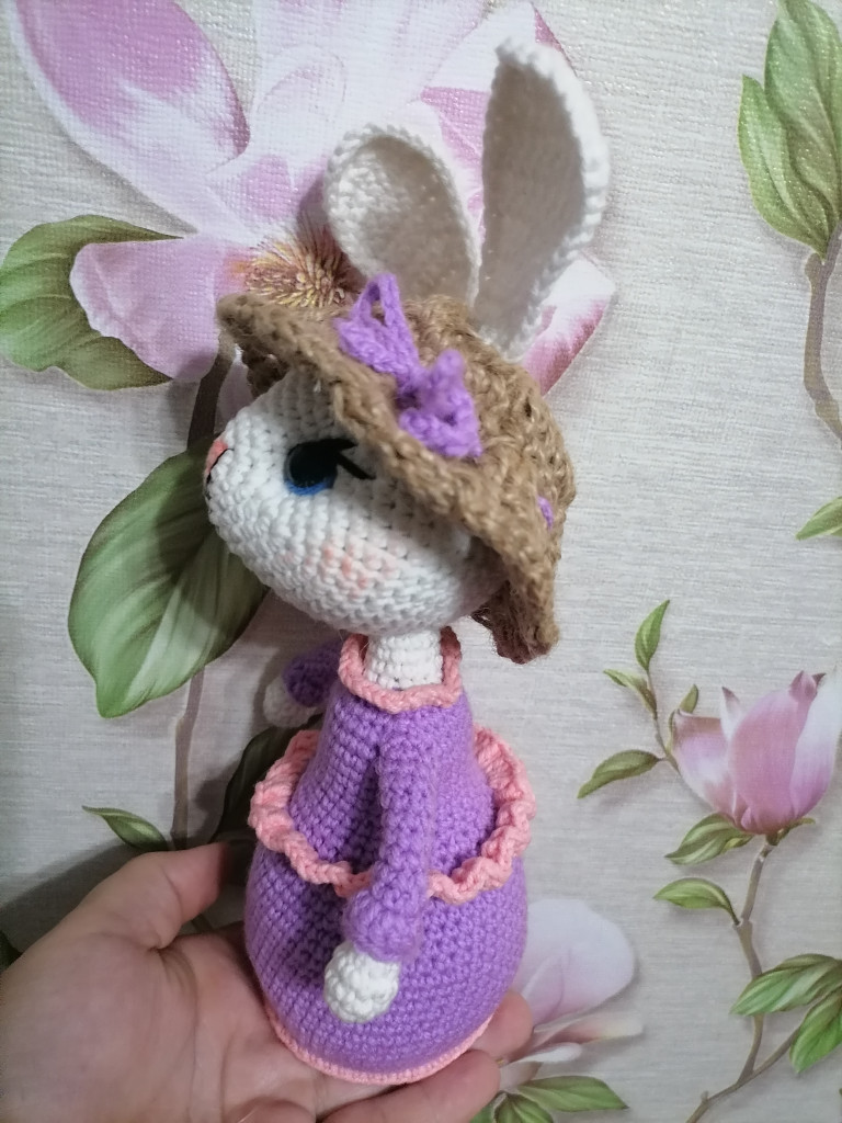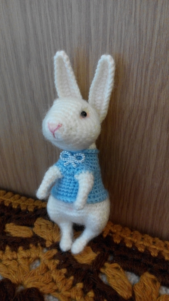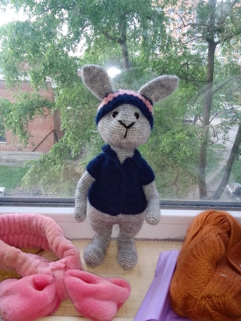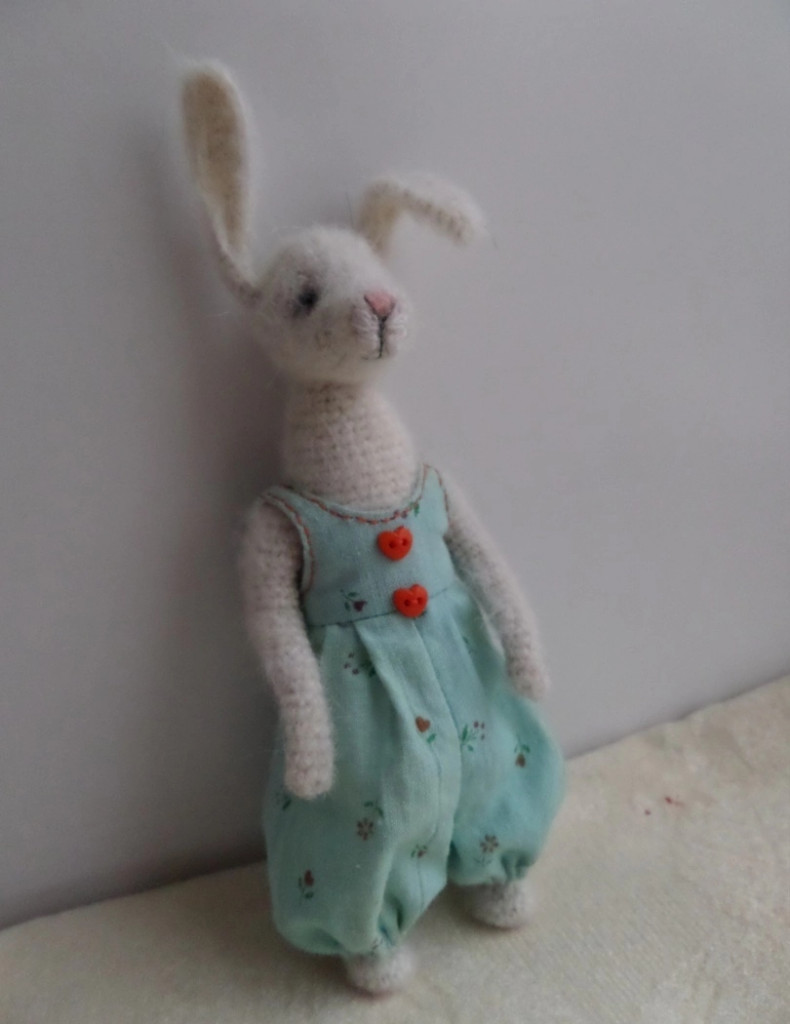 Тильда-Зайка по описанию Дарьи (Dashajr). Пряжа для зайки - YarnArt BABY 50г/150м цвет 7003, крючок 2,5; для одежды - акрил 50г/200м, спицы №2. Рост - 34 см, одежда вся снимается, ручки и ножки подвижны.