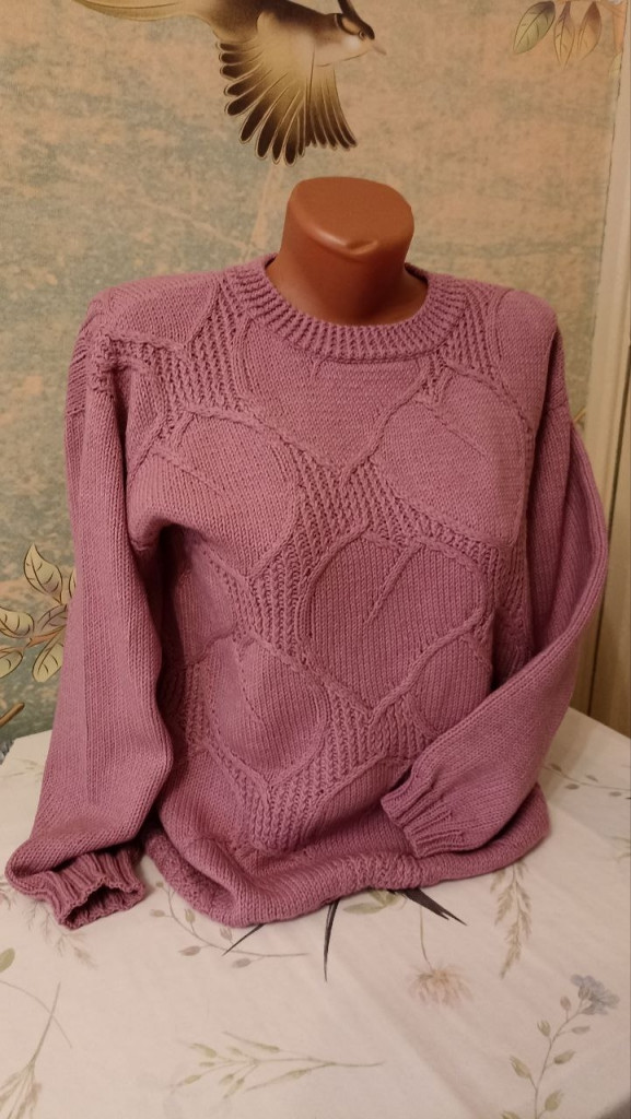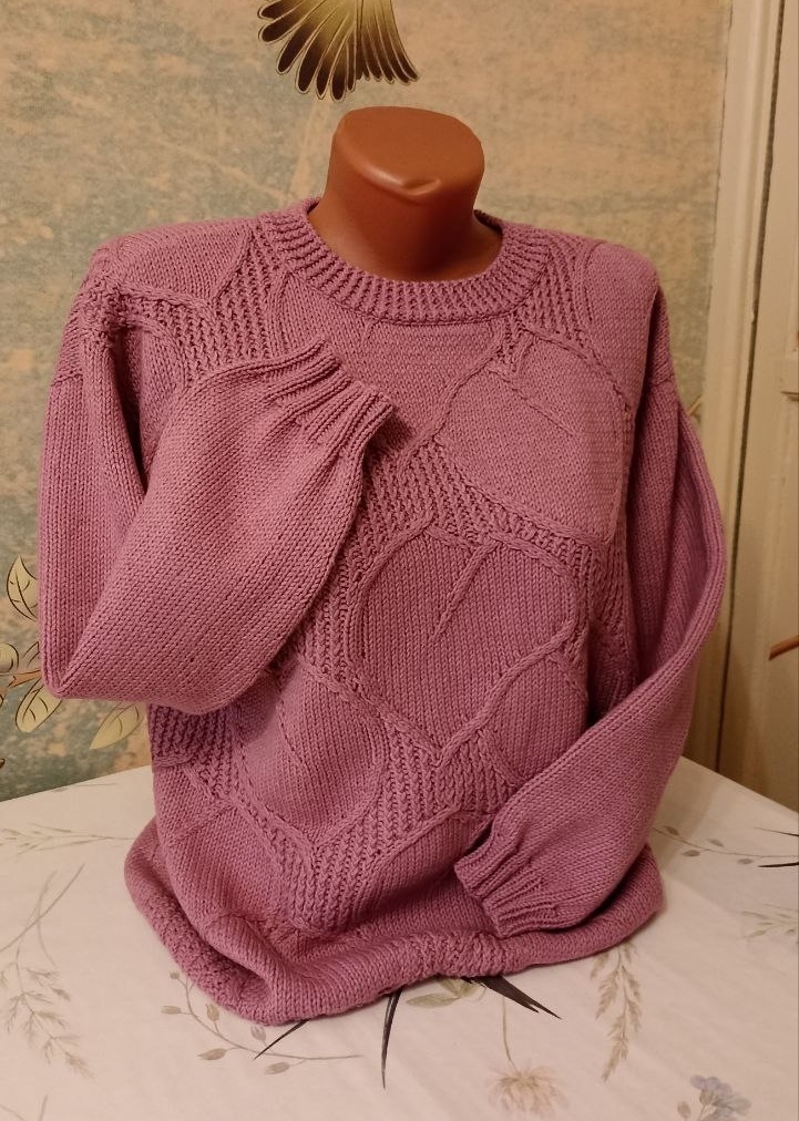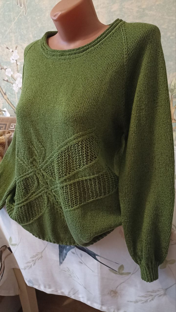 Джемпер с листьями, спицы. Долго искала схему, нашла