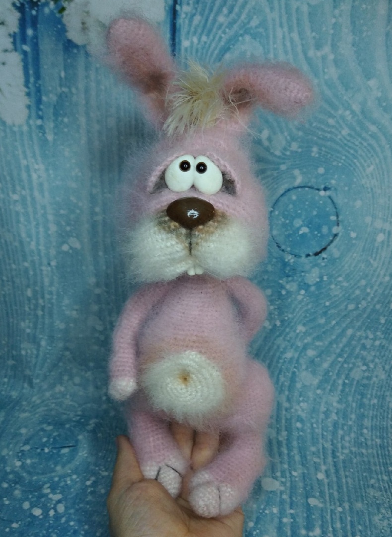 Этого зайца я пыталась связать на конкурсе,но у меня закончились нитки, размахнулась,он получился примерно без ушей 40-45 см