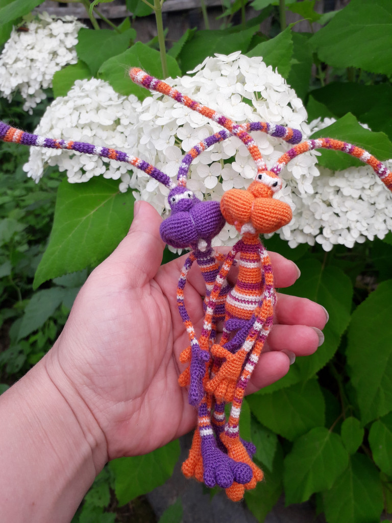 Связаны по мк С.Перцевой,крючок 0.7,рост вместе с ушками около 20 см.