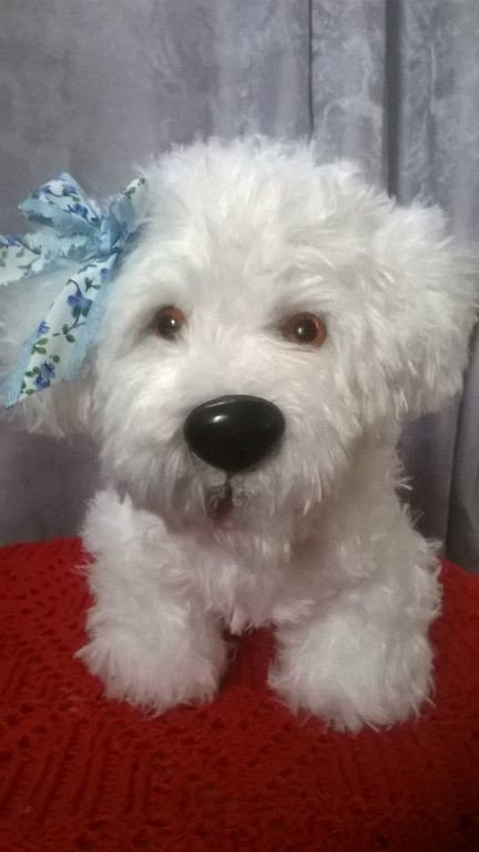 Моя дорогая Жозефина, для домашних просто, Жози) Связана из Ализе реал 40,воротничок-жабо из Ласки от Назар, в онлайне с Людмилой Шведовой по волчонку Грэю у меня получилась собачка.