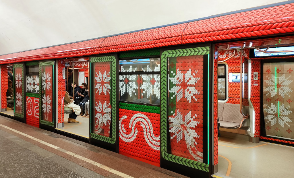 Поймала на камеру новогодний «вязаный» поезд в московском метро.