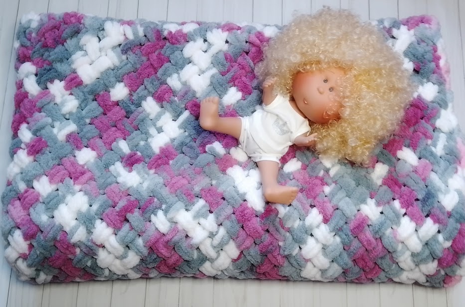 Плед из Ализе пуффи Файн для новорожденной. Вязала крючком.
