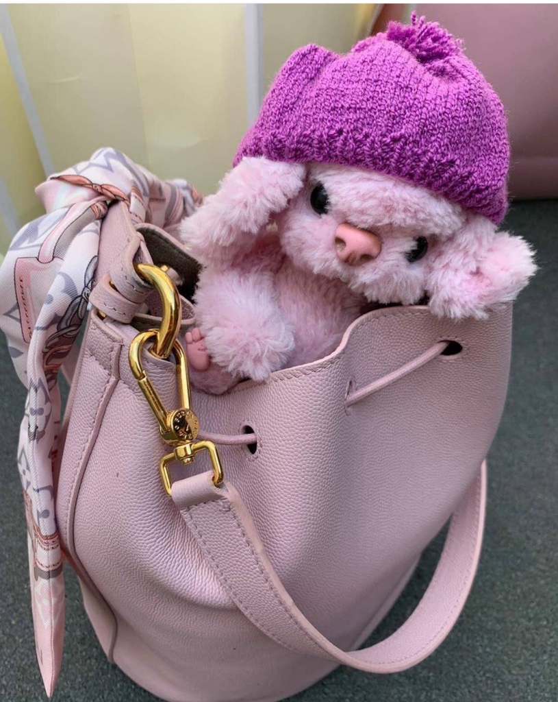 Зайка с приданым. Из какой-то плюшевой пряжи.