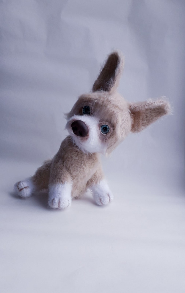 Портретная брошка шпица Баксика, связанная крючком из мохера