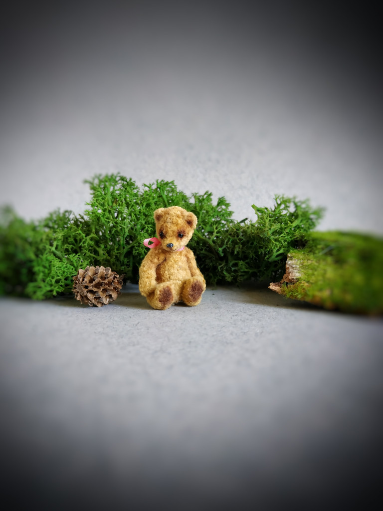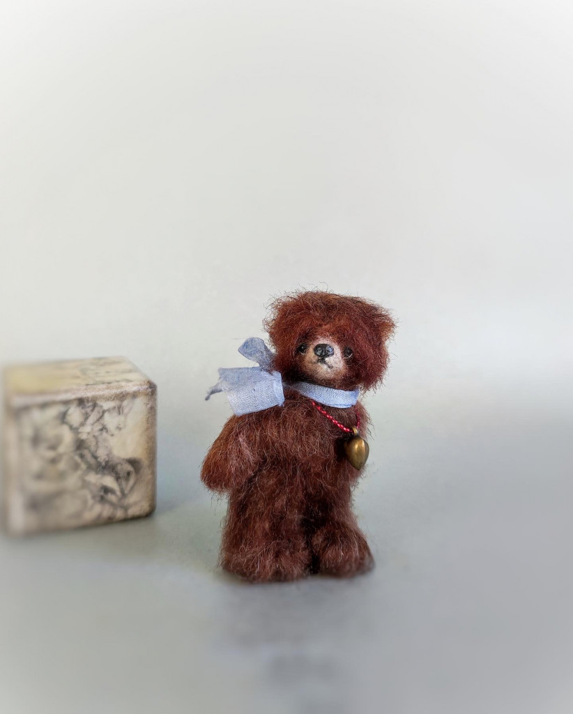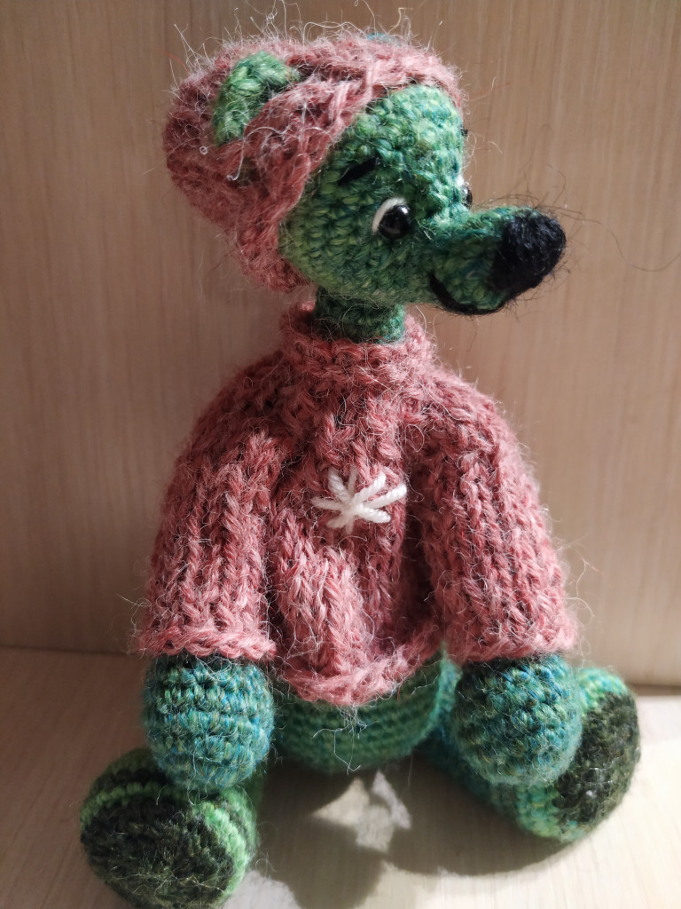 Михась. Попался мне на глаза интересный по фактуре клубок шерсти. Увидела я из него "чердачного" мишку. Результат перед вами . Михась. 10 сантиметров обаяния)))