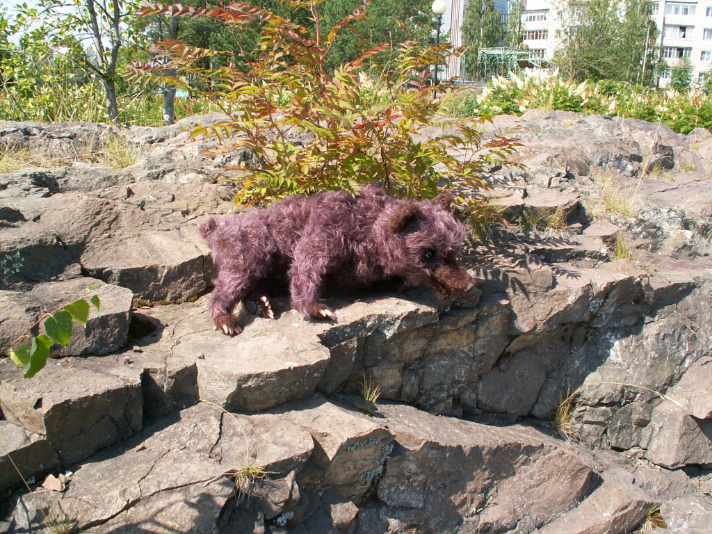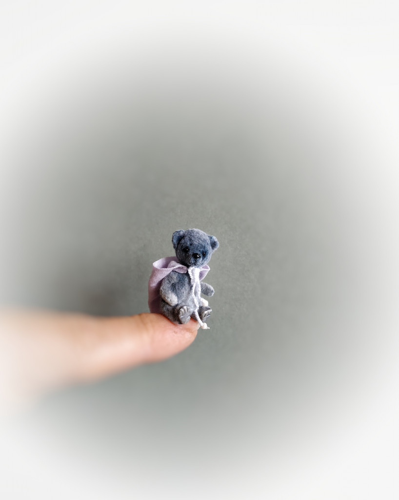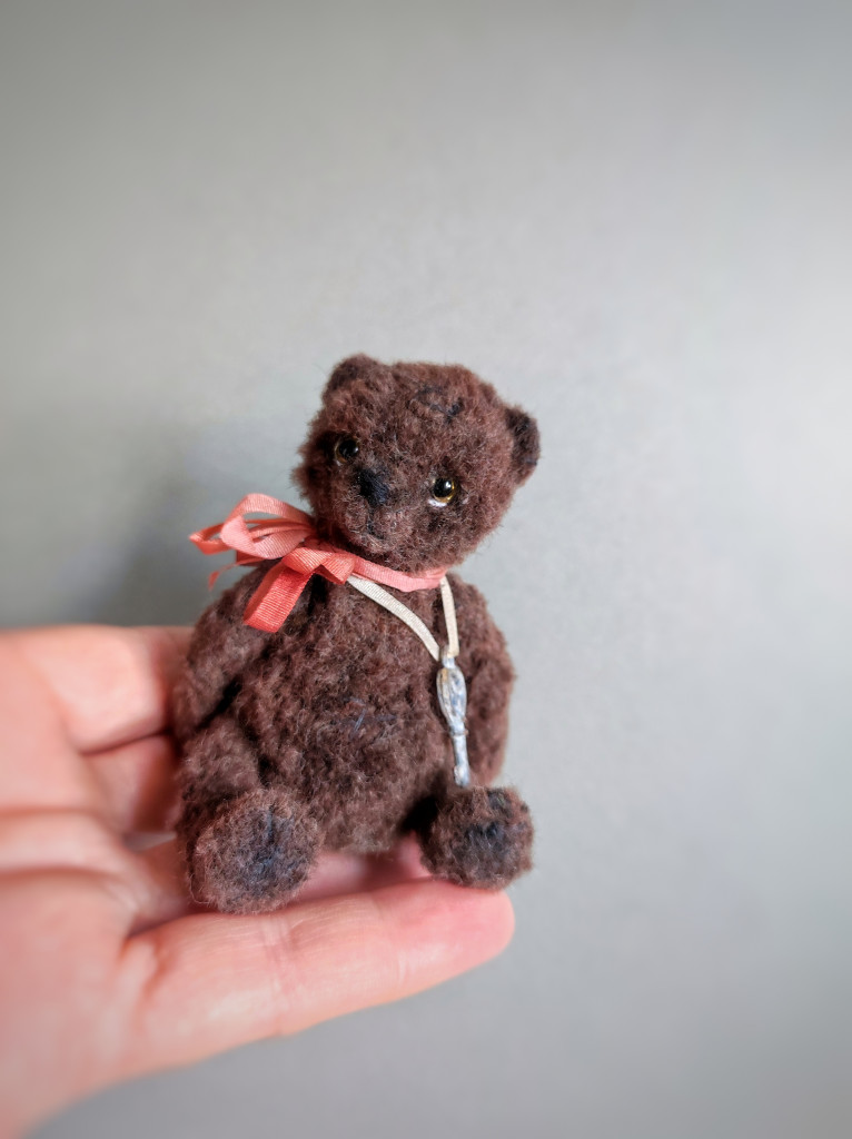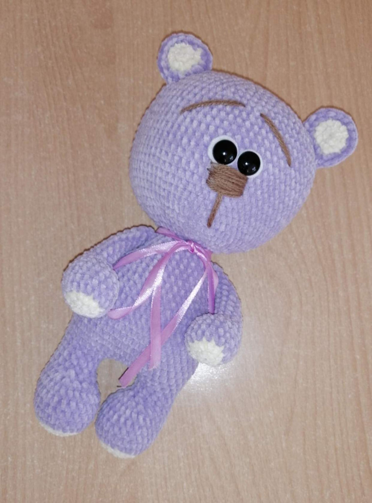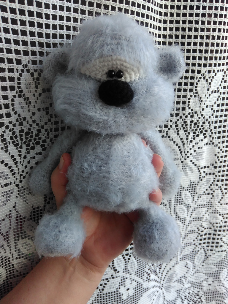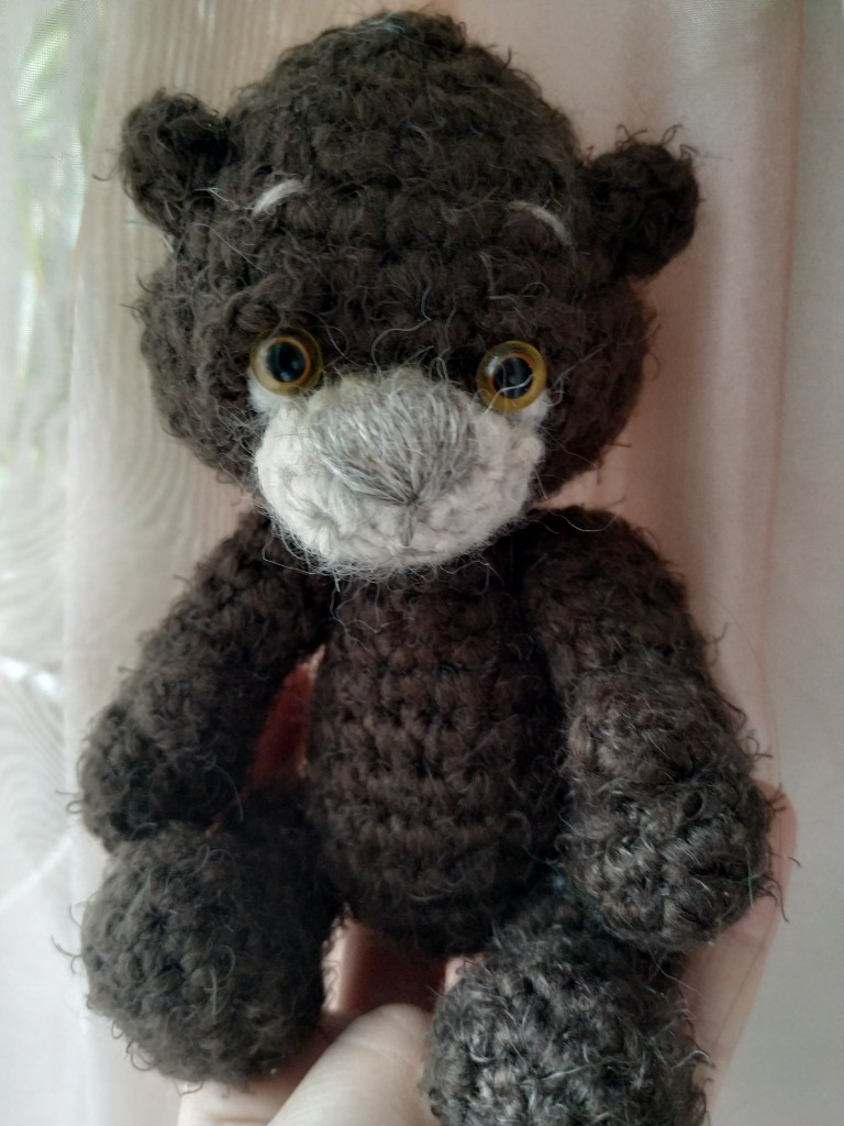 Мишка, связан из велюра по мк Валентины Бергер. Помещается на ладошке.
