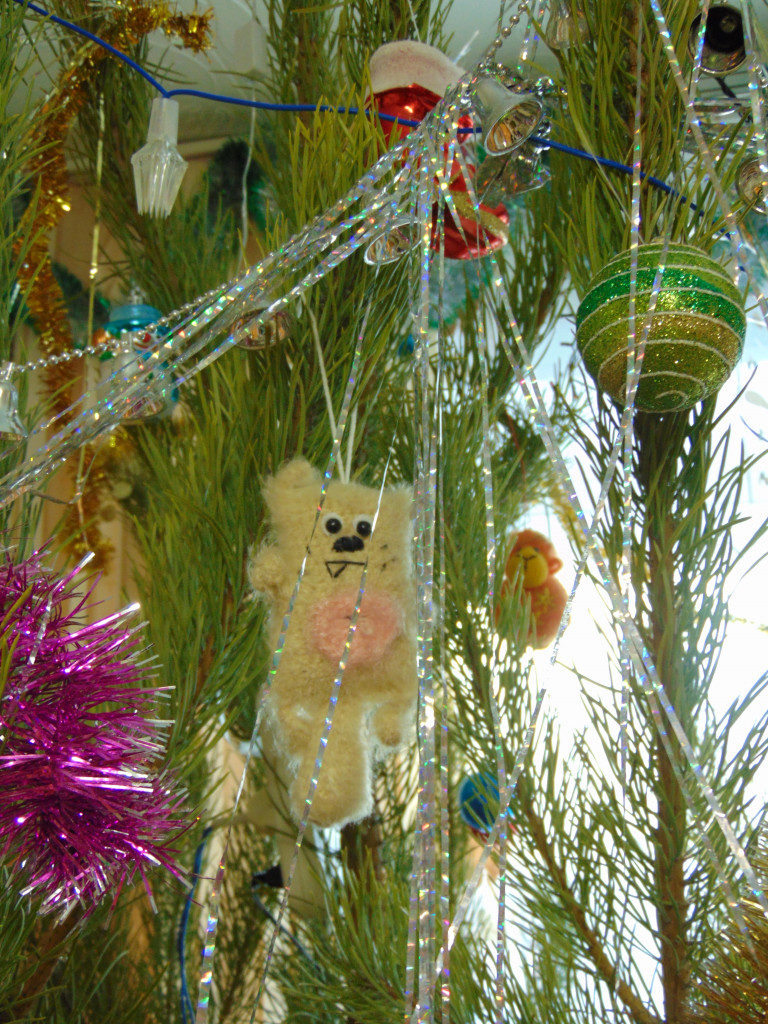 А любимых игрушек у меня несколько-и все они из моего детства еще(когда они у нас появились мне было тогда 4 года) -это часы,бооольшой колокольчик,кедровая шишка ,лимон и грецкий орех.Пусть они уже не такие блестящие и яркие какими были когда то,но они очень дороги как воспоминание,как память о счастливом и беззаботном детстве,а еще у меня до сих пор жива первая электрическая гирлянда -фонарики,ее можно было одну повесить без всяких игрушек и елочка выглядела шикарно,потому что каждый фонарик размером с елочную игрушку