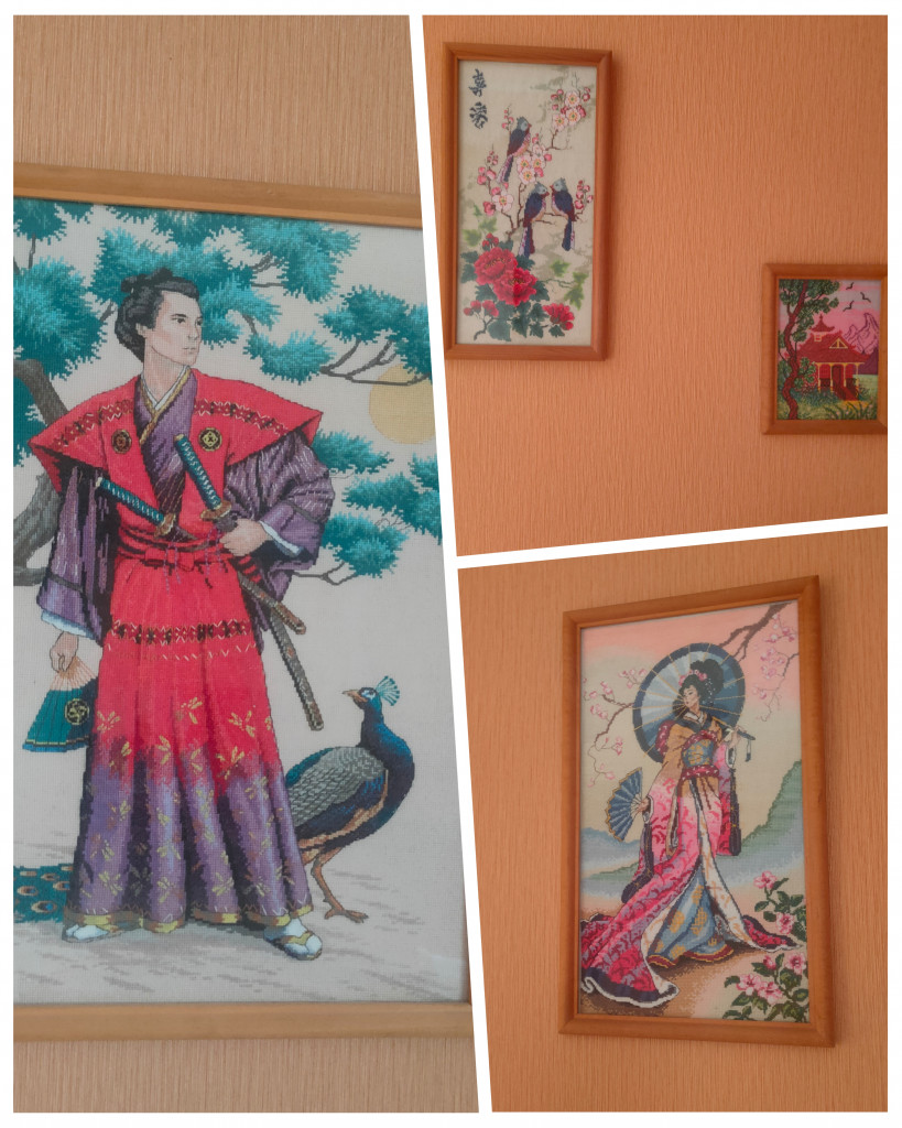 Маленькая часть моих вышивок разных времён. В последнее время больше на пластиковую канву перешла и небольшие сюжеты, так как их проще оформить и разместить в интерьере (и не только в нем).