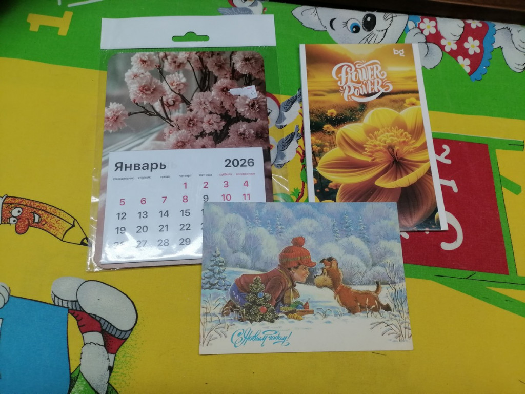 еще там было новогоднее поздравление ,календарь и блокнотик под мои быстрые записи