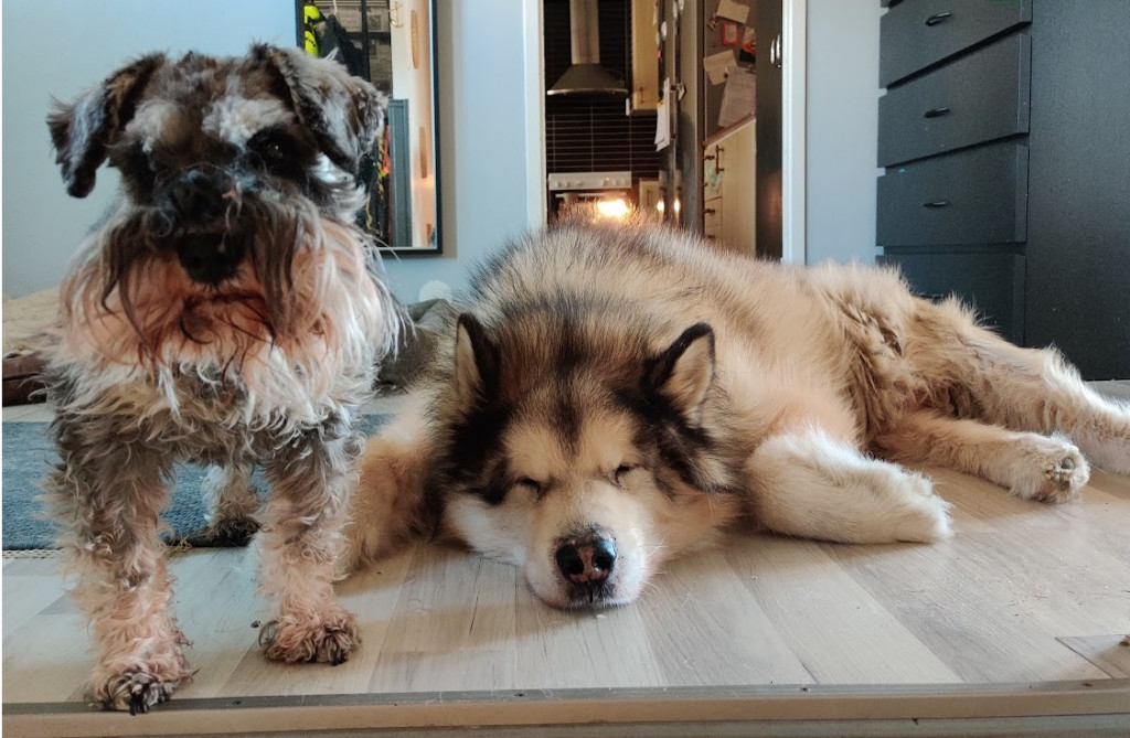 У меня 3 собаки - два аляскинских маламута и один цвергшнауцер. Маламуту мальчику 10,5 лет, маламуту девочке 9 лет, а шнауцеру 7 лет.