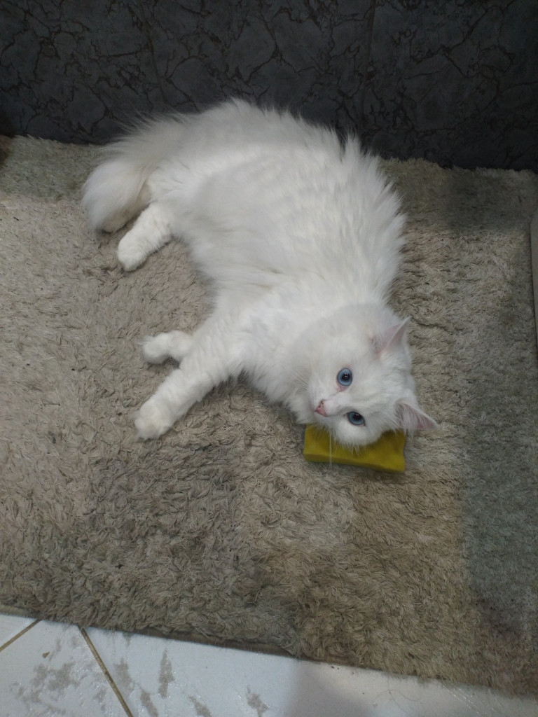 Наша любимая Бусинка, очень любит спать на подушке, в этот раз в роли подушки губка.