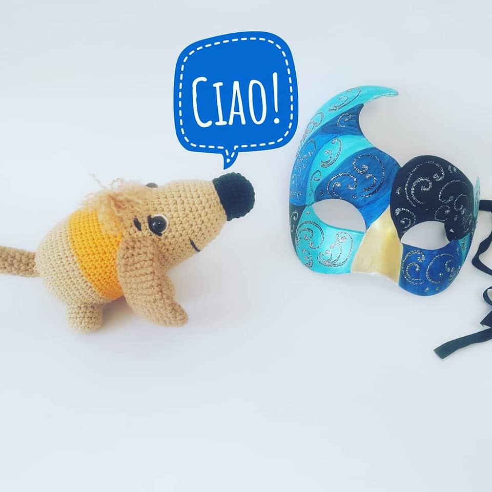 вязала эту собачку в он-лайн формате за 3 вечера: с 2 итальянскими вязальщицами садились в одно время и вязали вместе (они в талии, я в Астане), и общались по ходу пьесы. присылали фото кто сколько связал)) Собачка сиропчик по МК Марины Чучкаловой.
