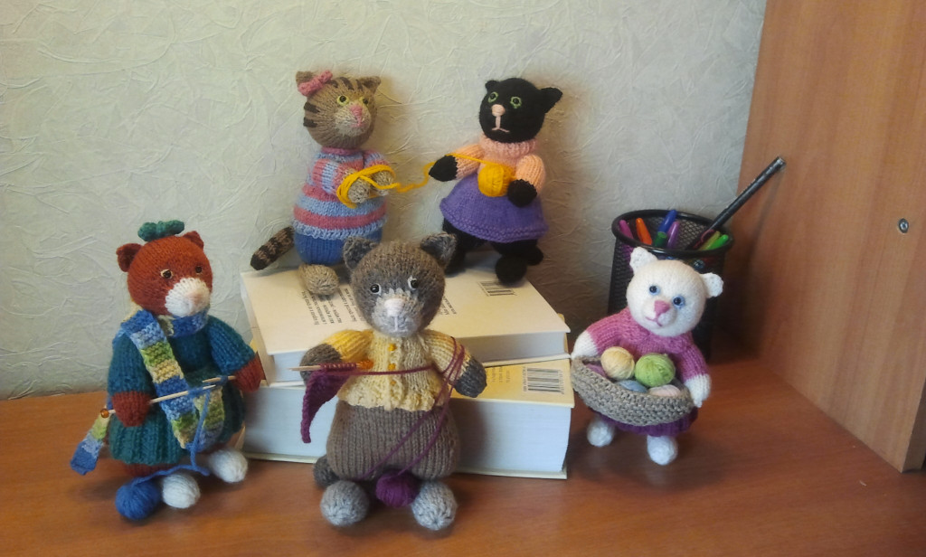 1. Добби -- мк С. Перцевой, 2. Спицевый мк от Колесниковой Юлии, 3 и 5 спицевые, мк гулял в интернете (кот Мандаринкин), 4. кот Обжоркин мк Марина Борисова (скорее всего, но не точно) 6. Котенок по мк М.Боровой 7. мк В. Терекбаевой 8. Влюбленный кот мк Ольги Моргуновой (Simplytoys13) 9. с оранжевого форума, автора не помню 10. Тигр по мк С. Комаровой