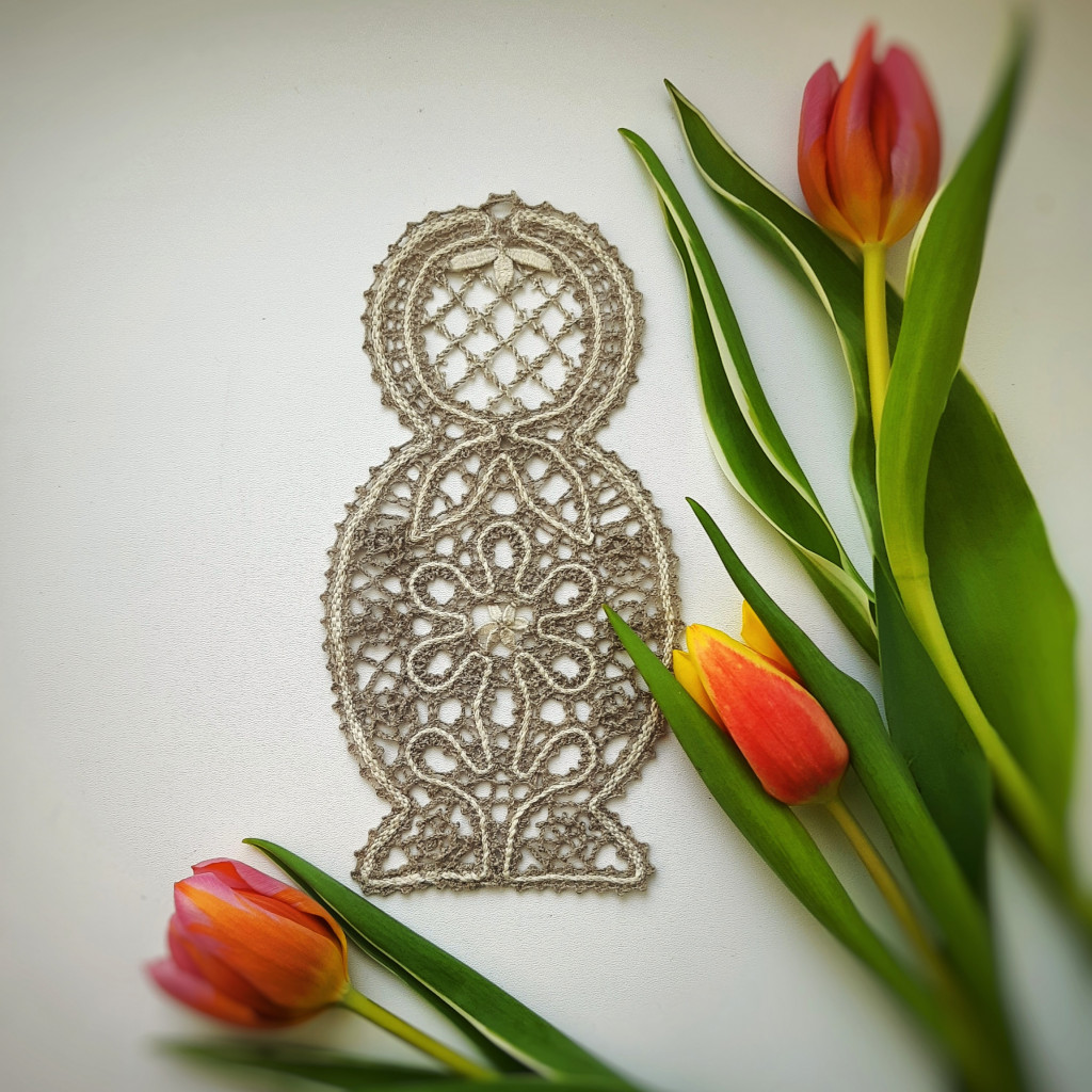 Вологодское кружево. Салфетка сплетена на коклюшках)