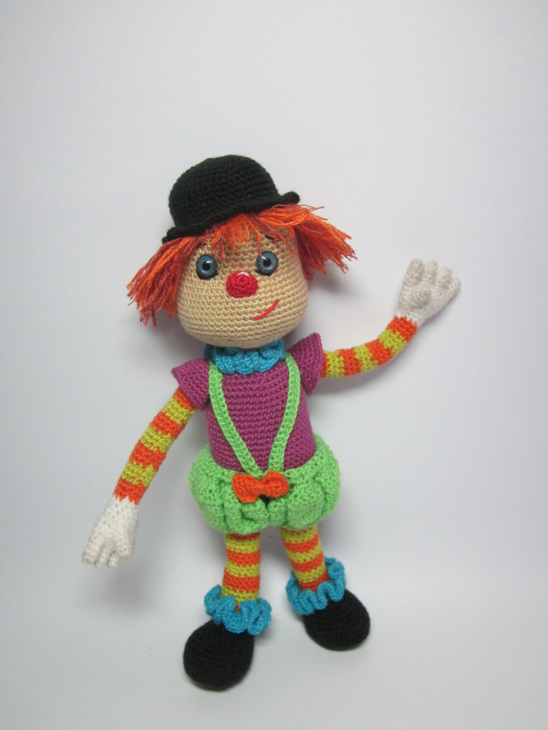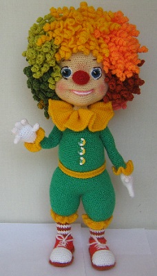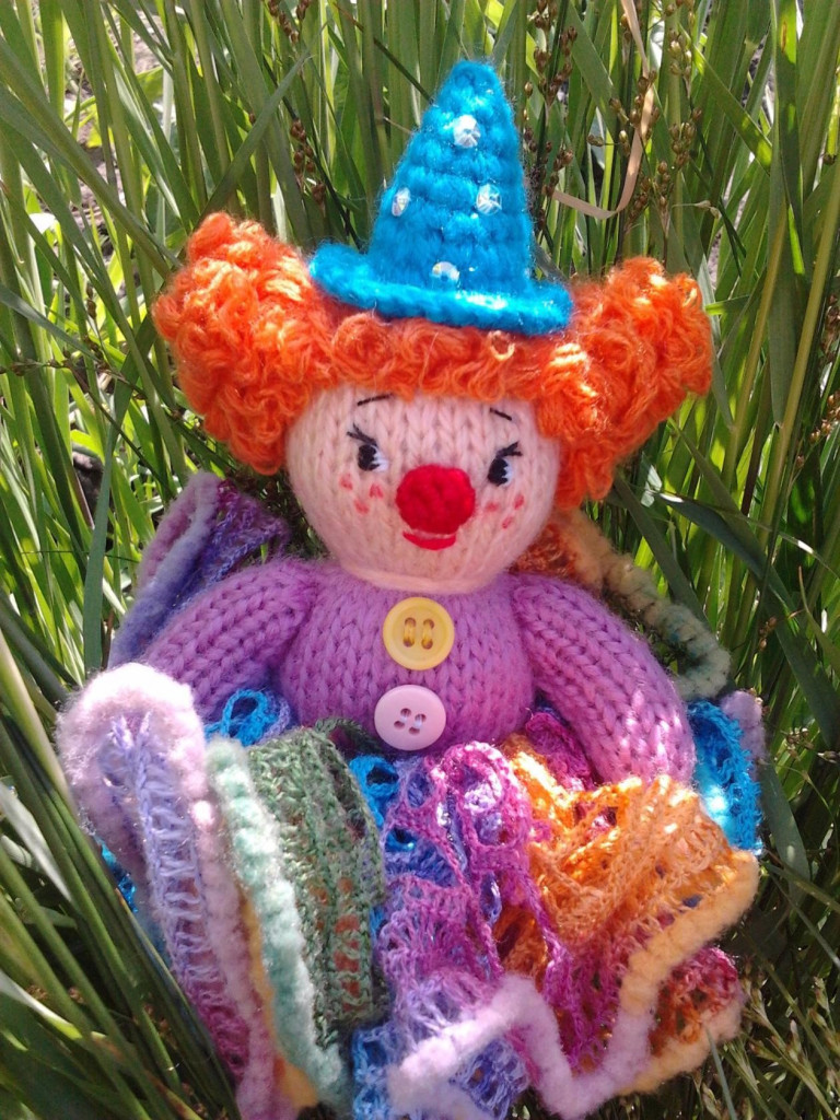 Ещё одна моя авторская работа клоунесса-Пуговка.Высота куколки-15 см,связана спицами.