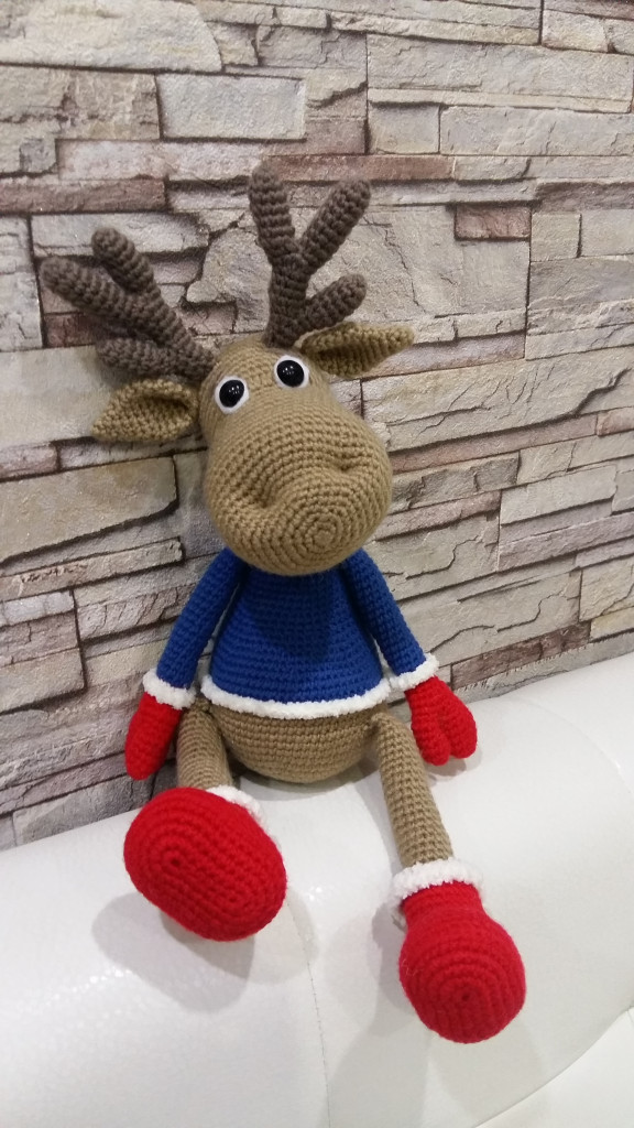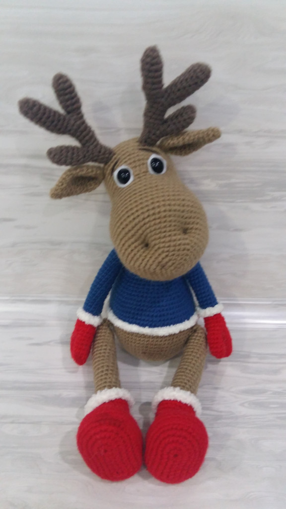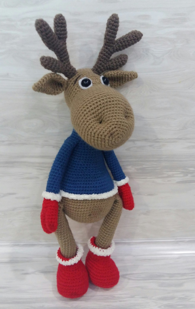 Олень Рудольф (МК Устюшкиной Марии) пряжа Пехорка Детская новинка, 100 % акрил 50 г/200 м, высота 35 см