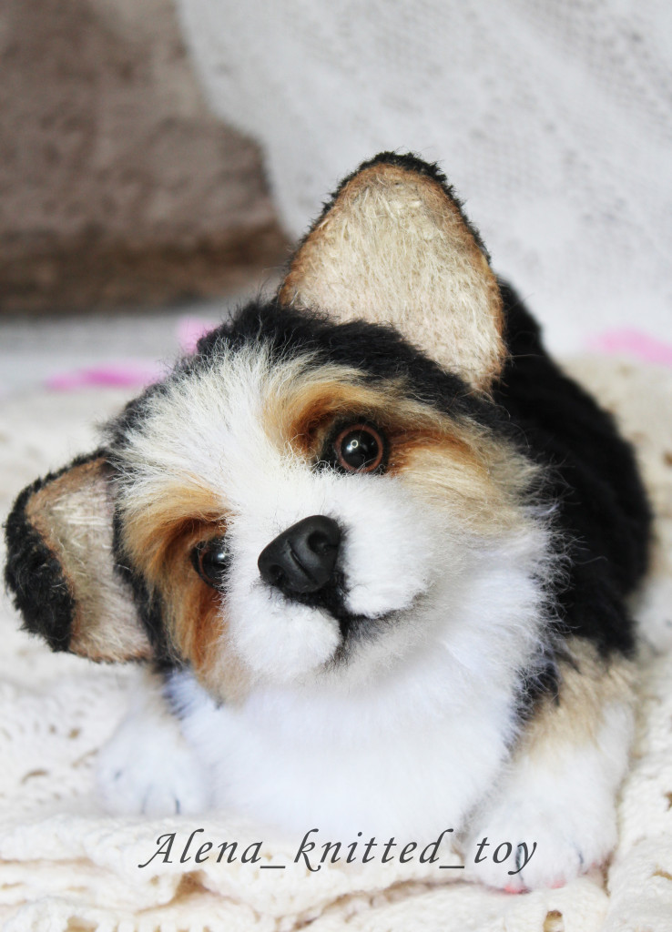 Первая вязанная собачка. Автора мк не знаю. Собачка 10см. Может лежать и сидеть