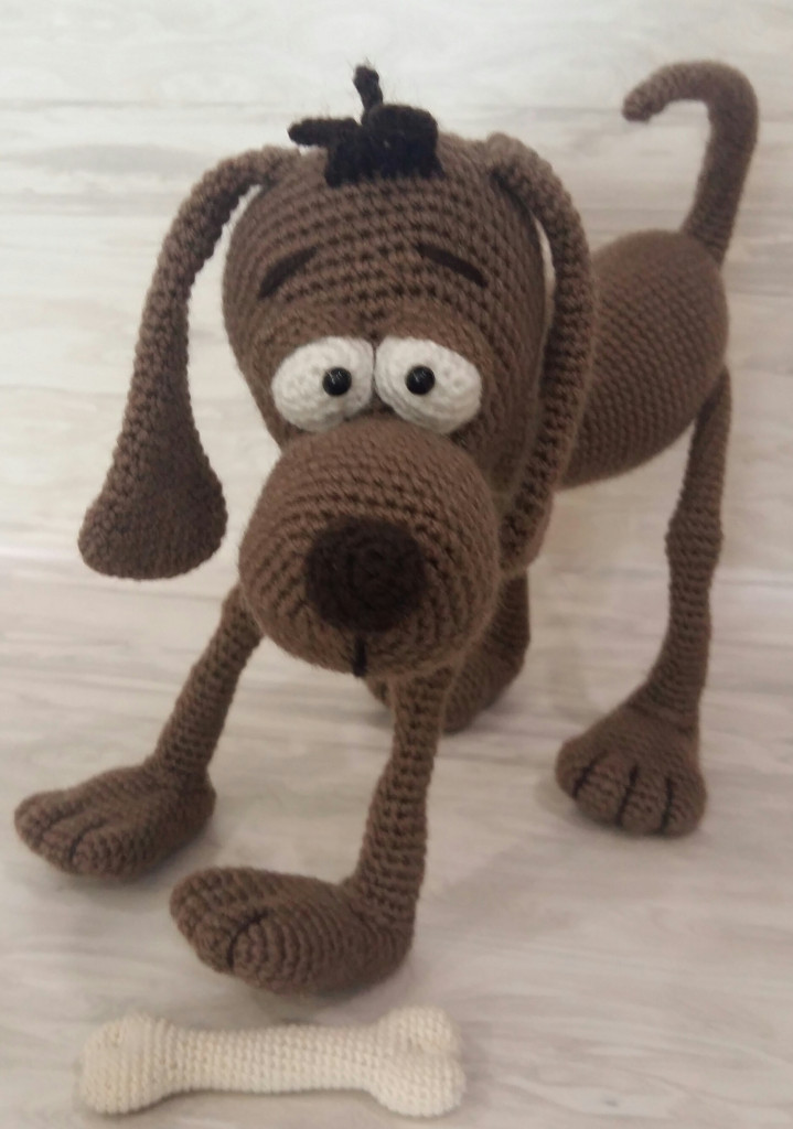 Первая вязанная собачка. Автора мк не знаю. Собачка 10см. Может лежать и сидеть
