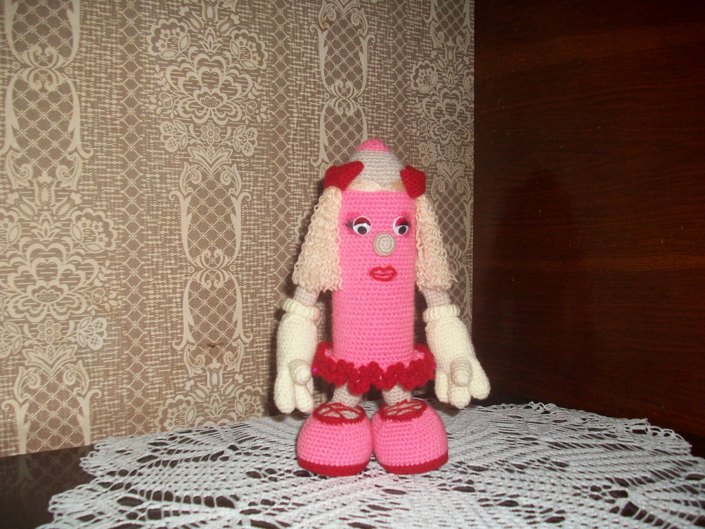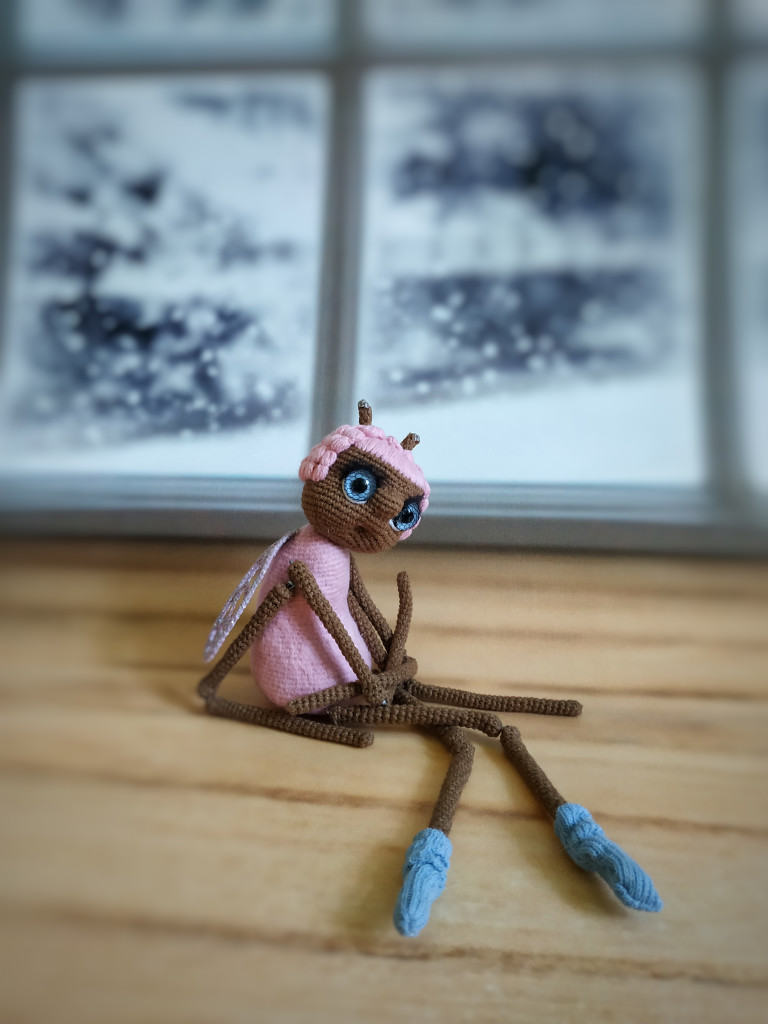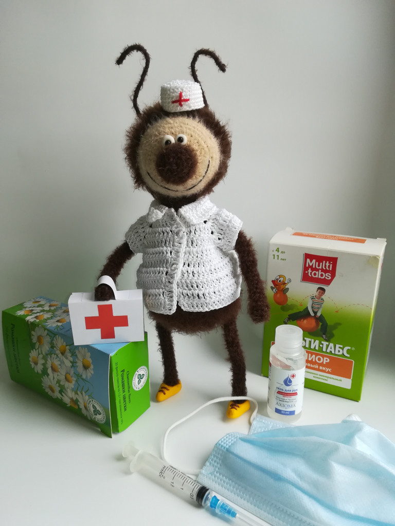 А этот персонаж был связан по готовой работе, найденной в интернете. Рост у него 8 см, а длина тела 15. Эта игрушечка тоже безопасна для маленьких деток. Безопасные глазки, детский акрил, холлофайбер.
