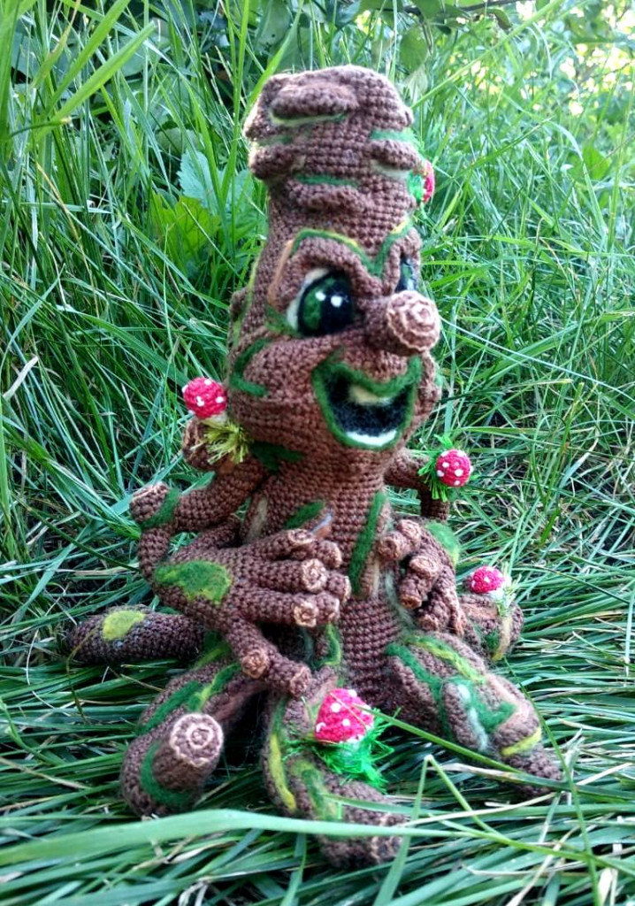 Один из моих любимчиков Представитель Лесного департамента капи-пень Федя. Связан "Ирисом", крючек кловер 1. Глазки, прожилки мха- приваливание шерсти.Игрушка высотой 26 см.