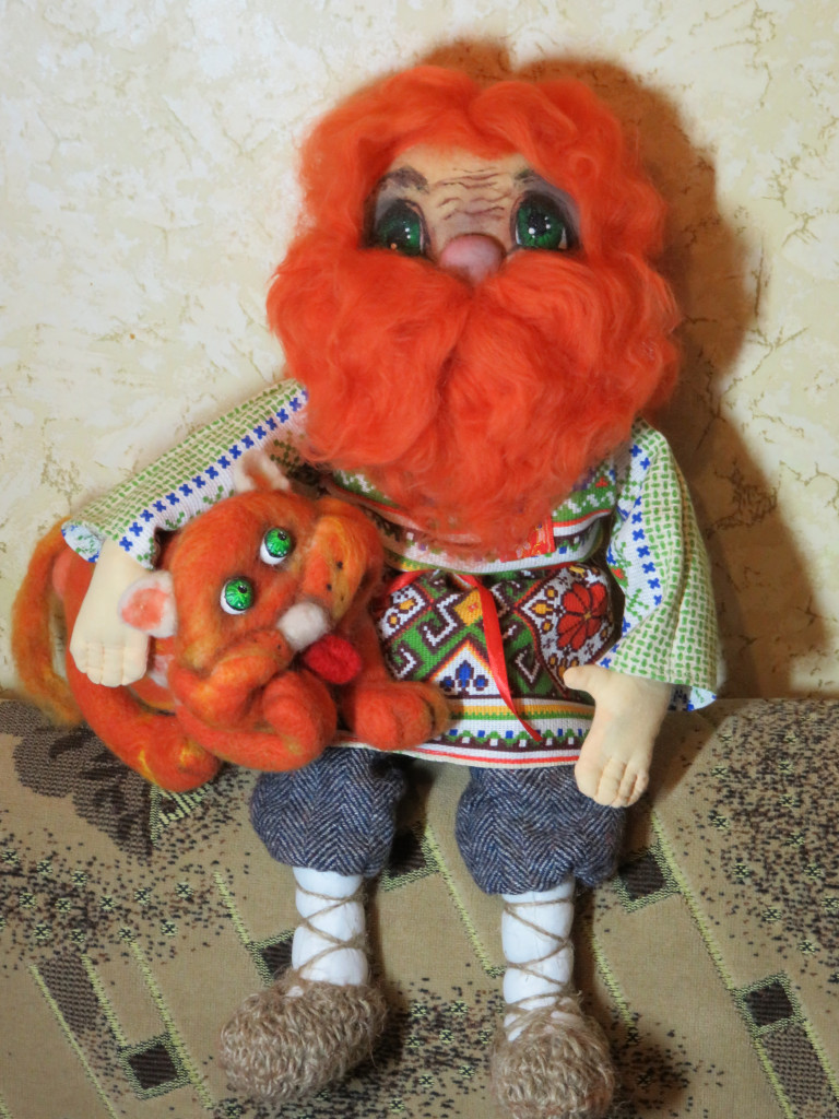 Домовой сшит, а вот его друг верный, свалян из шерсти, так же как и волосы домового. А еще было время, увлекалась канзаши и чего я их забросила? Сама не пойму, наверное двух рук на все не хватает)))