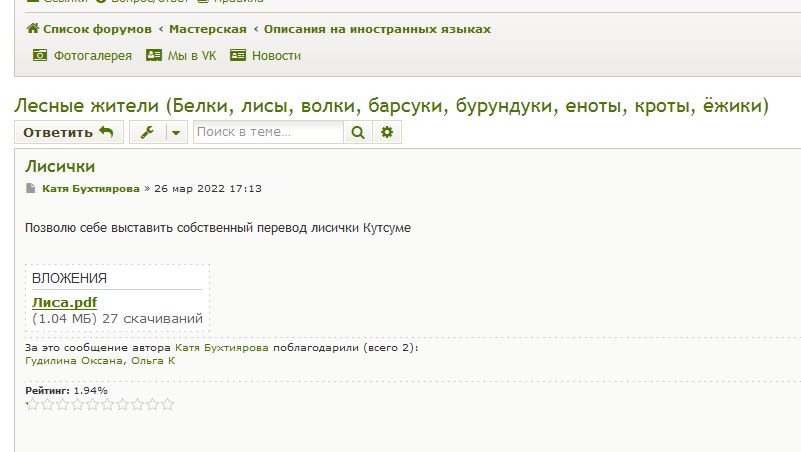 И ещё, это перевод на русском нужно перенести в "Описания и схемы на русском языке" в "Лесные жители (лисы, волки, барсуки, белки, бурундуки, ежи)"