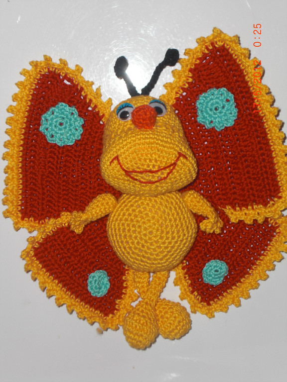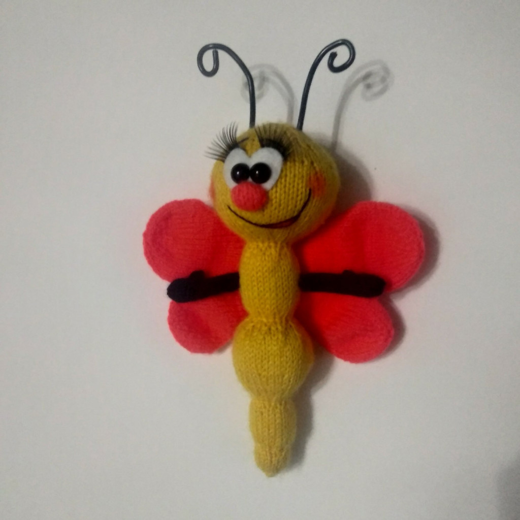 Вязались по мк. Бабочка - магнитик на холодильник. Змейки-к году змеи.