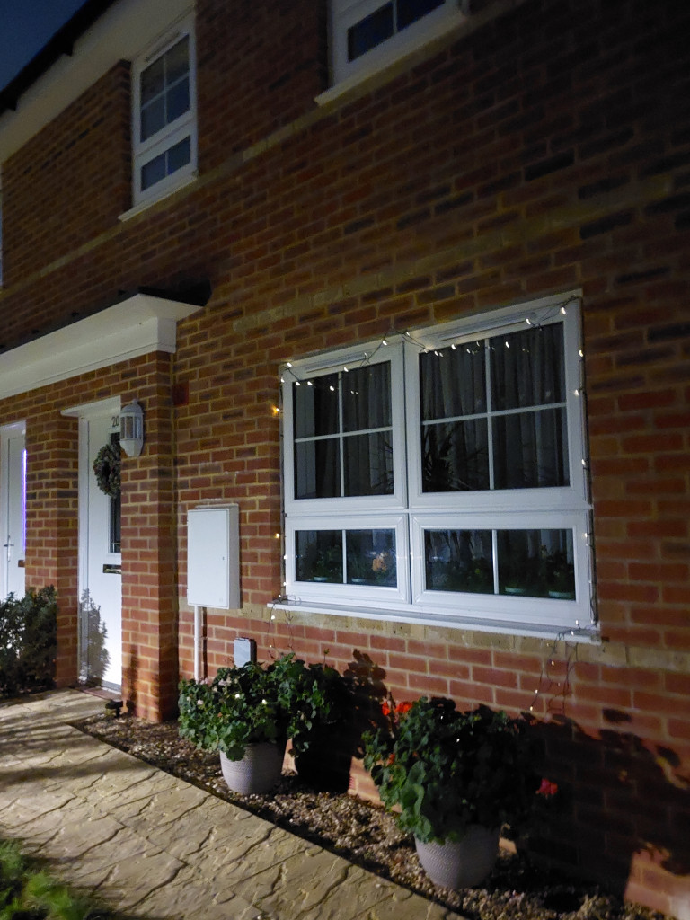 Я окно в этом году украсила снаружи.... скромненько горит потому как лампочки там от солнечной батареи :-)