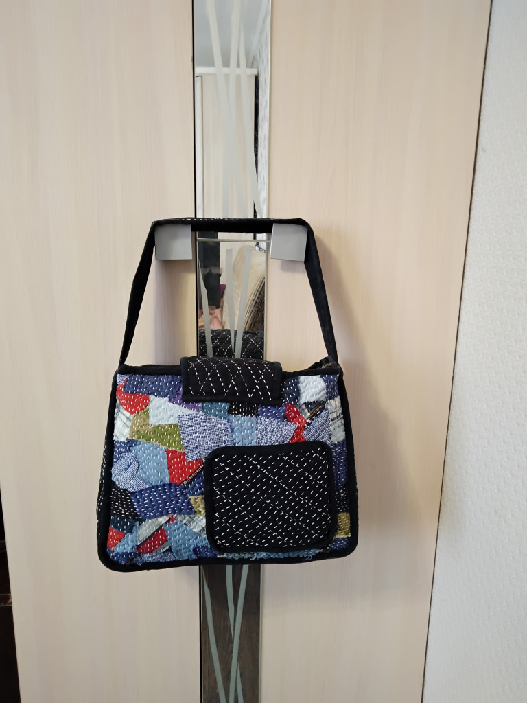 Сшила недавно сумочку в технике боро. Ручная стежка.