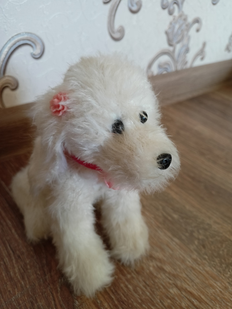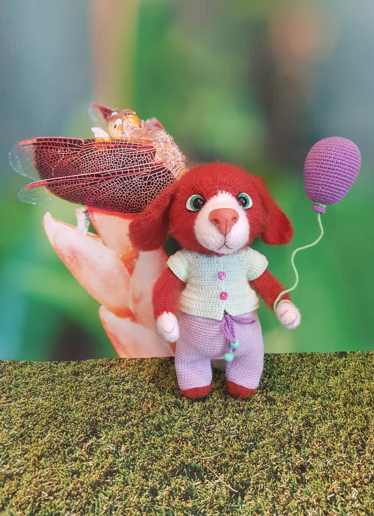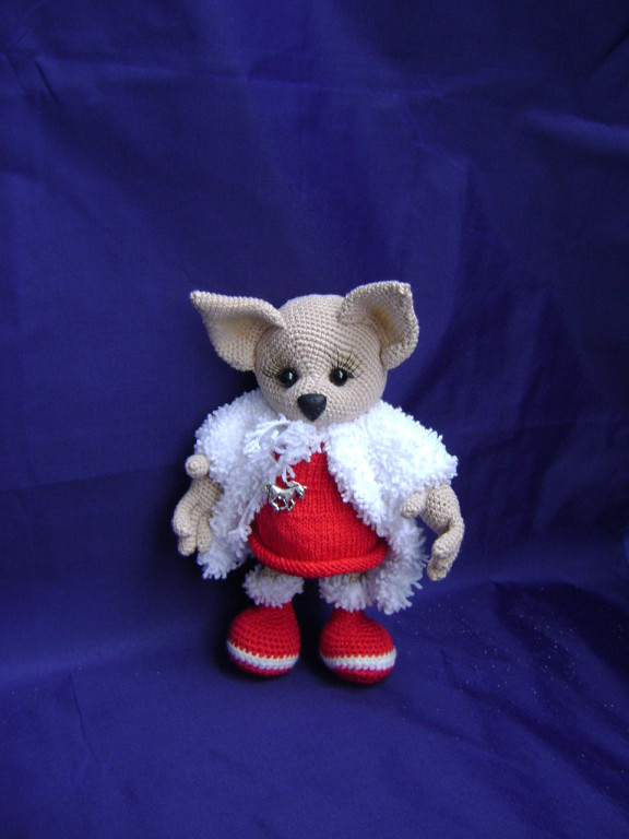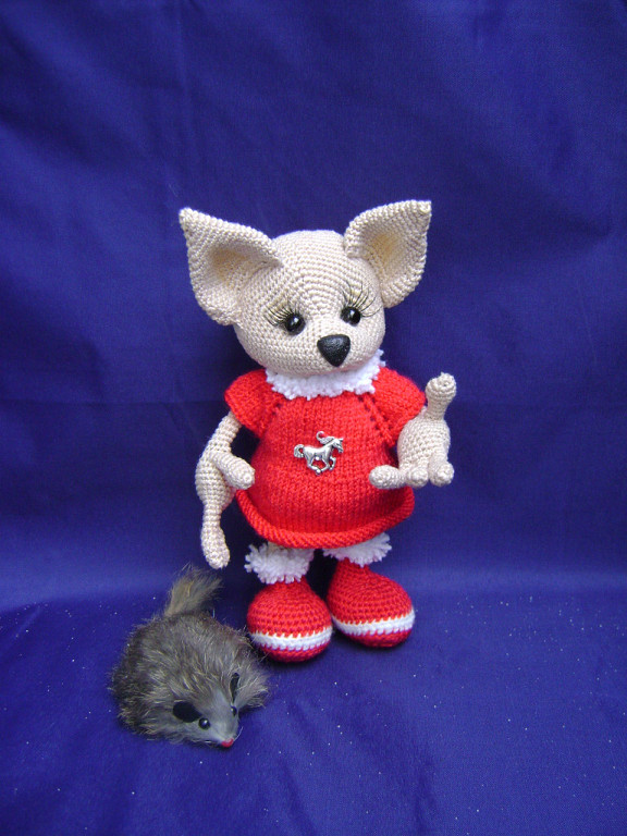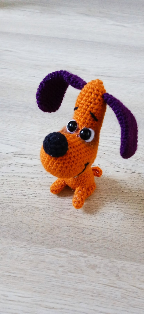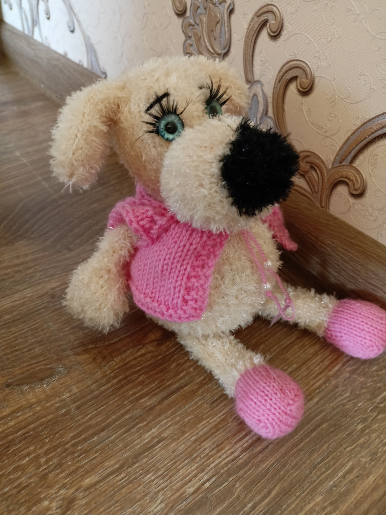 А у меня первая вязаная собачка по МК Татьяны Коротких. Чудной получился, но доченька себе его забрала, сказала, что он хороший.