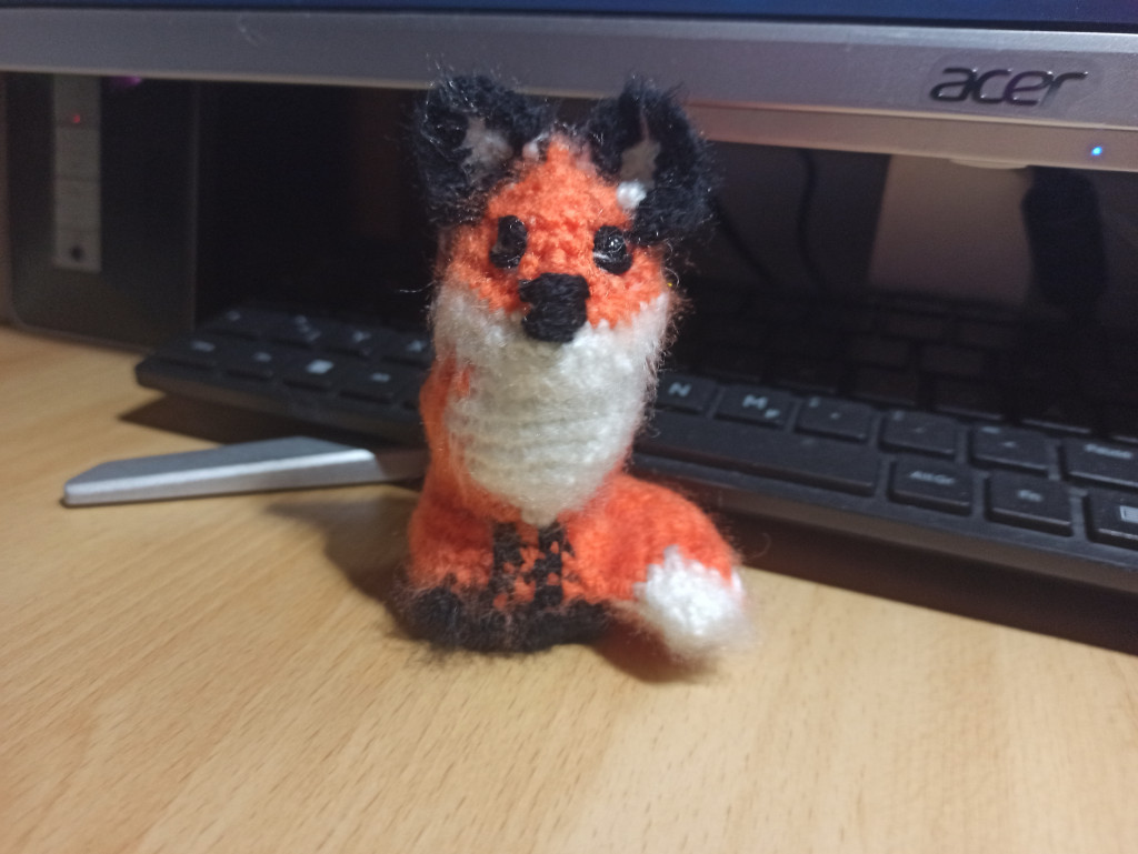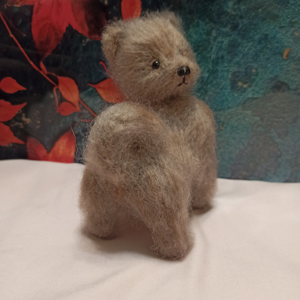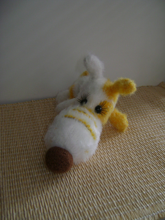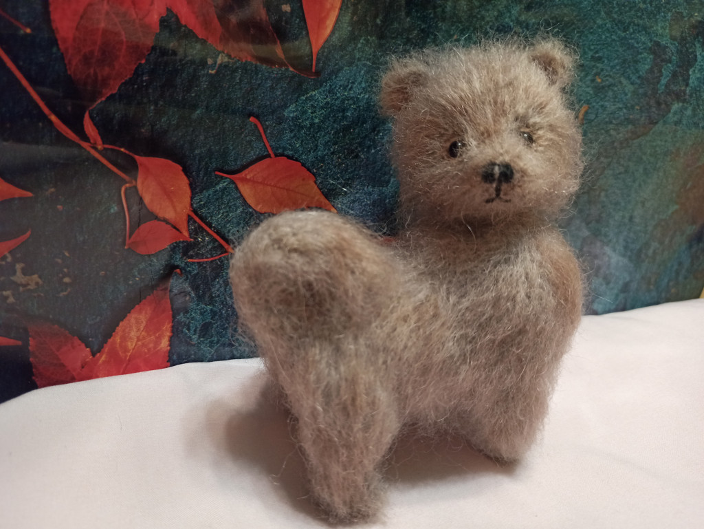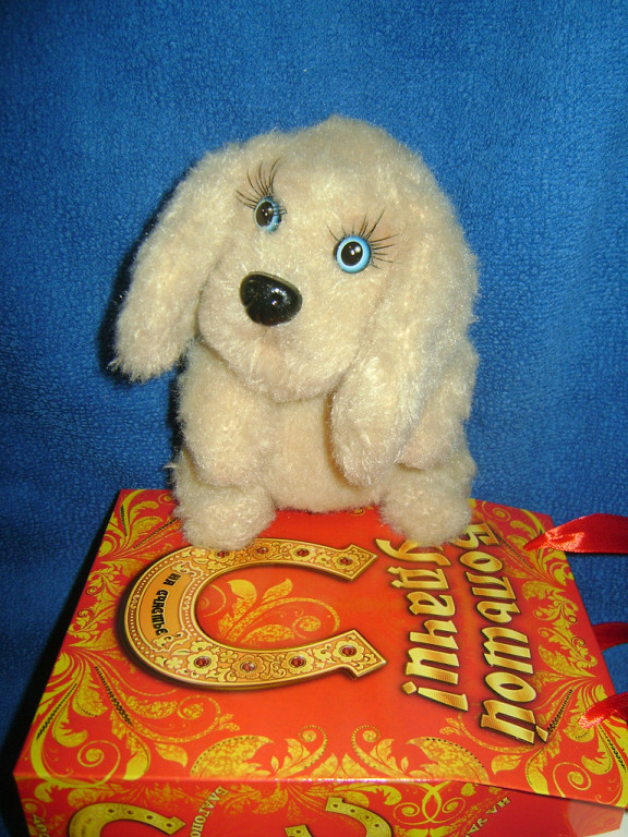 А у меня первая вязаная собачка по МК Татьяны Коротких. Чудной получился, но доченька себе его забрала, сказала, что он хороший.