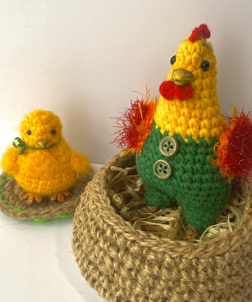 Пасхальная Цыпа и петушок . Связаны без всяких схем, визуально, на глаз