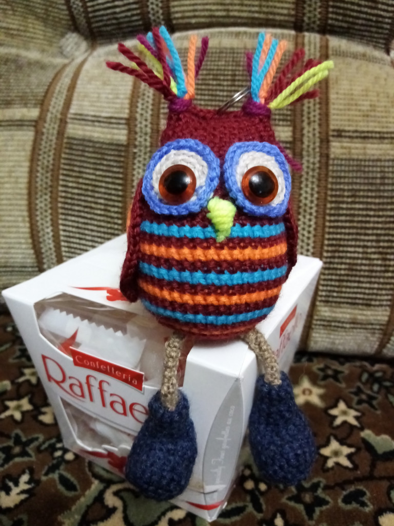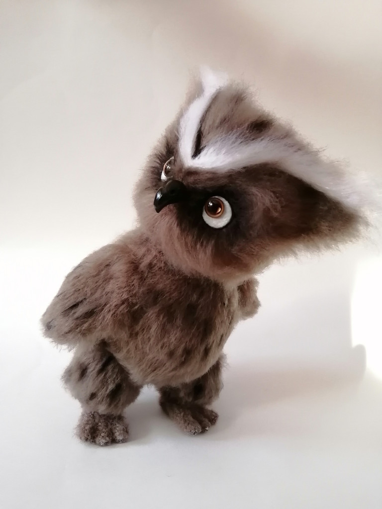 Мой филиненок выпорхнул из онлайна с @Наталья Зрожевская Сова Найра. Связана в 2 нити:Nako Paris+1нить китайского shisheng. Сочетание идеально подходит для пушных зверей