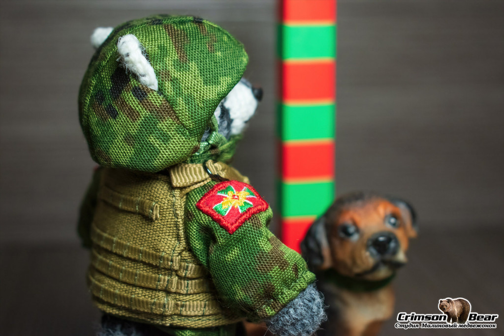 Енот пограничник. Нашивки погранвойск и РФ. Тактический бронежилет плитник с функциональной системой креплений. Композитная каска: усиленная основа плюс камуфляжный чехол. Пограничный столб и служебная собака в комплект не входят.