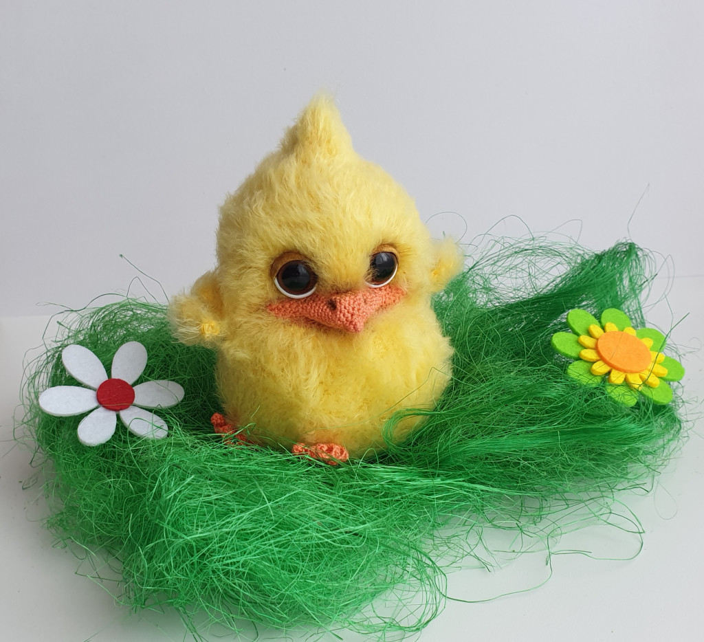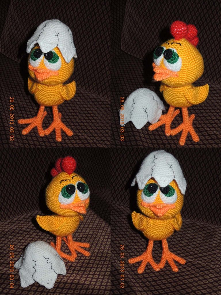 Малыш связан крючком из фактурной полухлопковой пряжи. Глазки на безопасном креплении. Клюв и лапки ввязаны и выполнены из тонкой хлопковой ниточки. Рост цыплёночка около 13 см. ❤