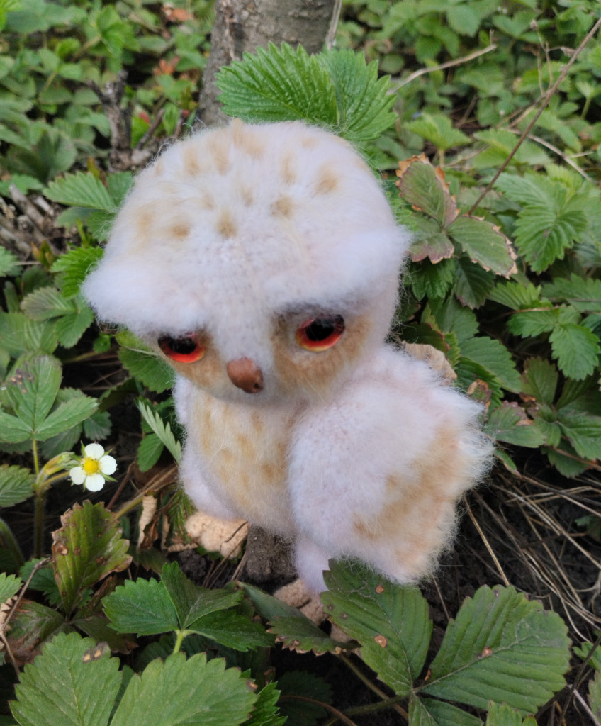Тут сразу три совы. Доброе утро по описанию Ями (сделав фото, заметила, что клюв отпал). Маленькая вроде бы по описанию ларисы1122, хотя могу ошибаться, давно вязалось. Третьего автора не могу вспомнить.