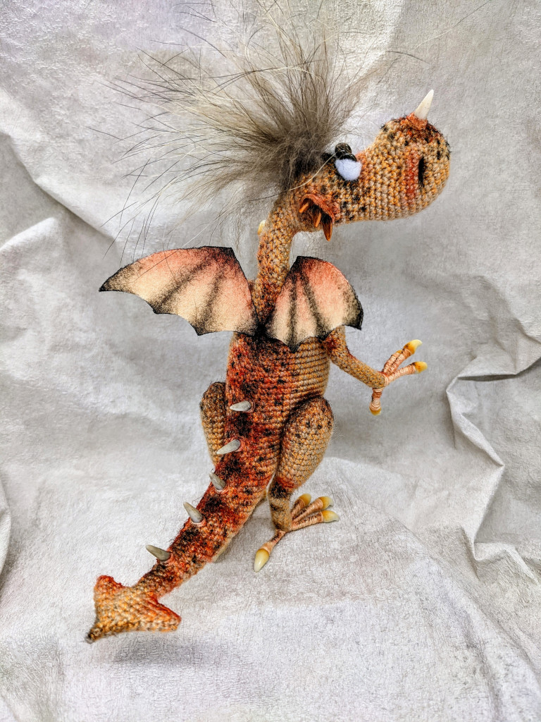 У меня новенький Дракошка!) В этот раз без шплинтов, без каркаса (небольшой отдых от них)), опять с множеством элементов из полимерной глины, ростиком 17см.