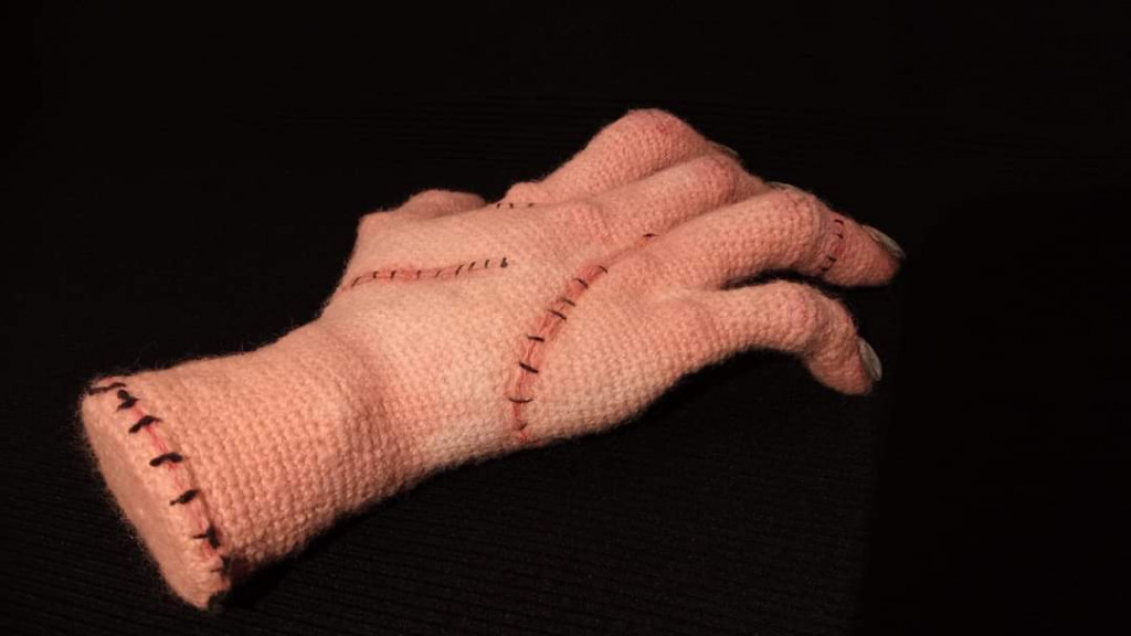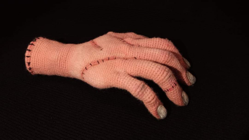 Связан из ангоры (дополнительная пряжа на украшалках - ирис), вышит бисером.