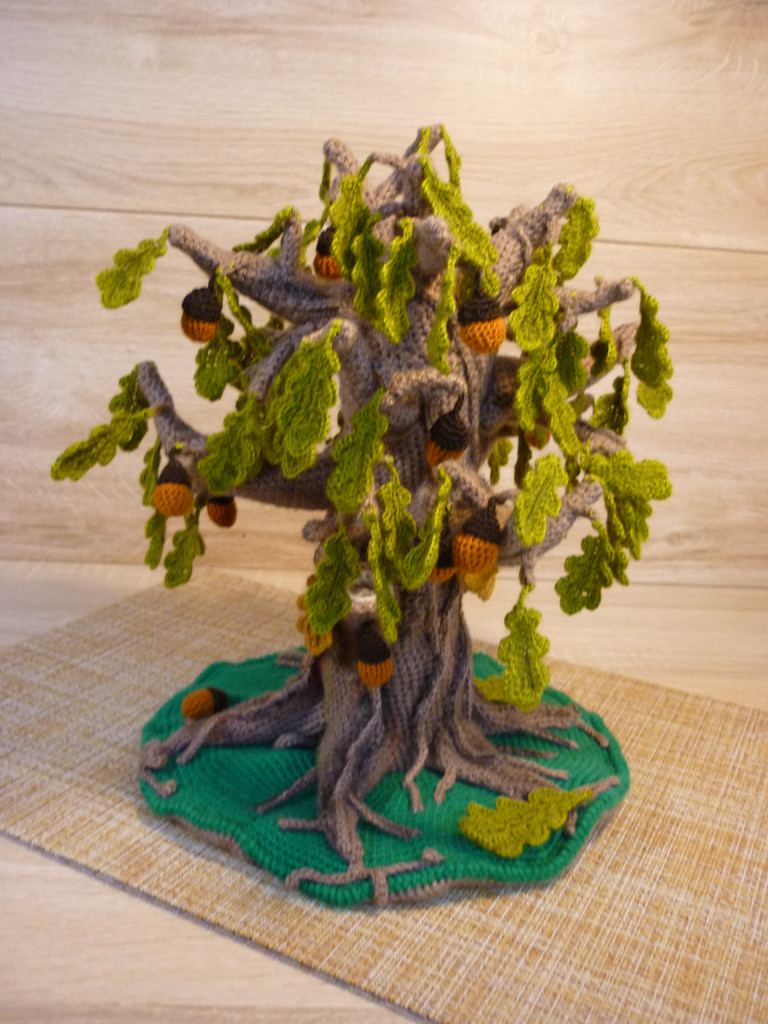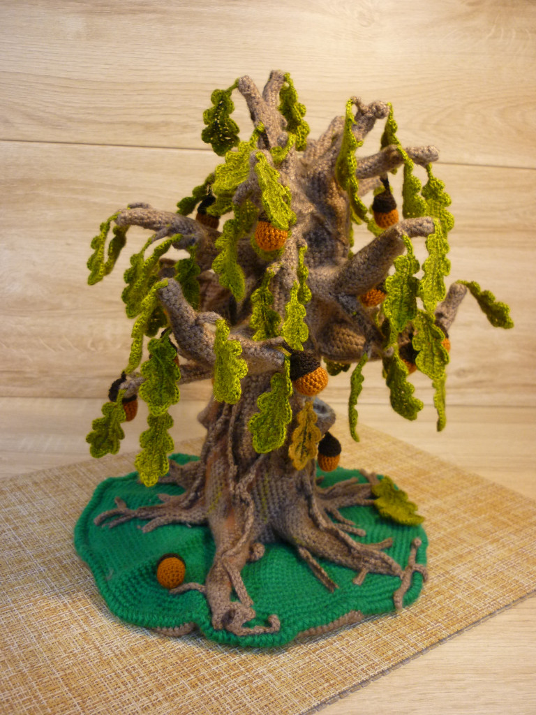 Связан ДУБ из пряжи ПЕХОРКА "Детская новинка". Крючком №1,25. Листики, желуди дуба связаны из пряжи "ИРИС". Размер дуба 25 см.