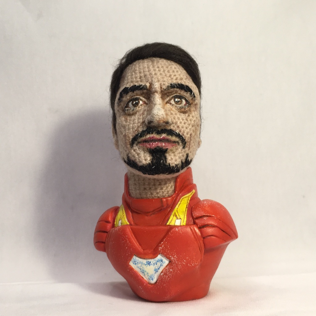 Портретный бюст, Тони Старк, выполнен из Ангоры голд, крючок 1,0, размер 12-13см