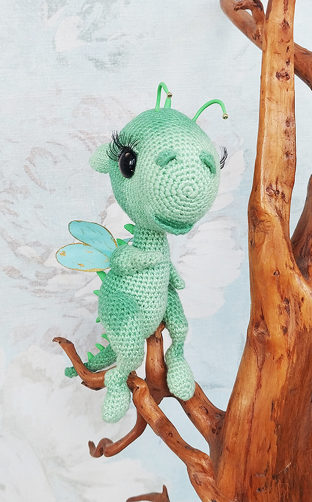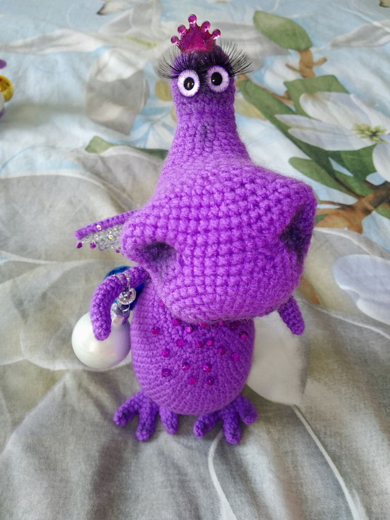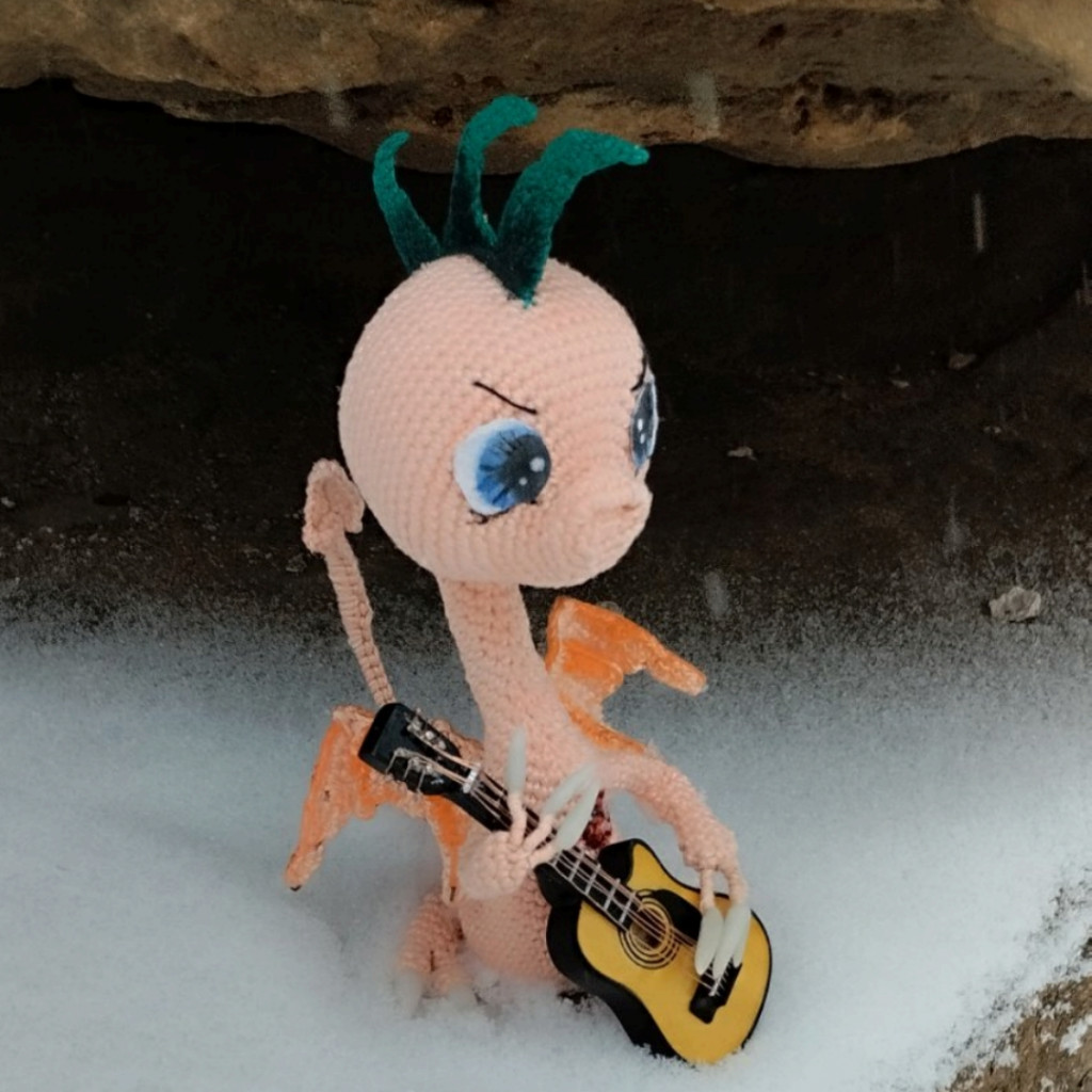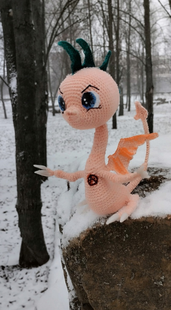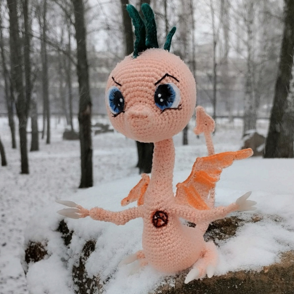 Пряжа Nako Bebe Mix (100гр - 370м) расход 34 гр. Крылышки из ириса. Высота дракоши по макушку16см.