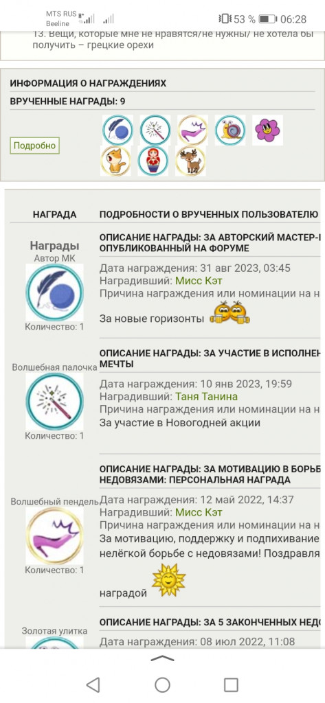 Хотела посмотреть в наградах своих за что зеленый цветочек. А профиле его нету, и вообще не отображается. Пишет, что всего 9, а показывает 8.